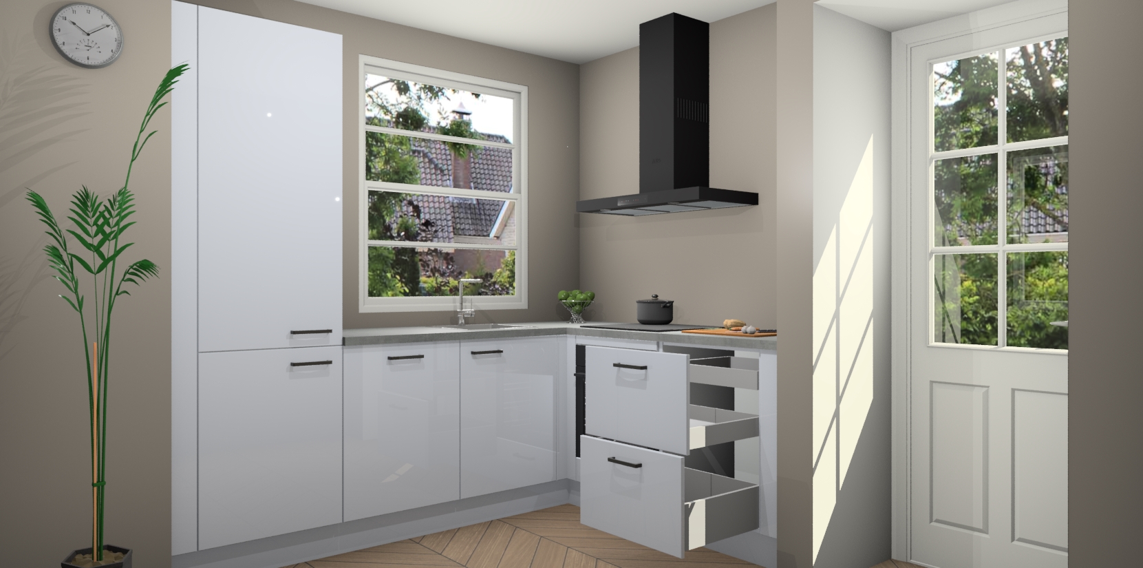 Alsof dat nog niet genoeg is, krijgt u al deze functies zonder lang te hoeven wachten; de levertijd bedraagt slechts zeven weken! Plus, onze vaste lage prijs maakt het aanschaffen van deze chique keuken een fluitje van een cent. Dus waar wacht u nog op? Haal de Sneeuwwitte hoogglans keuken Harbin vandaag nog in huis en renoveer u ruimte in stijl.
