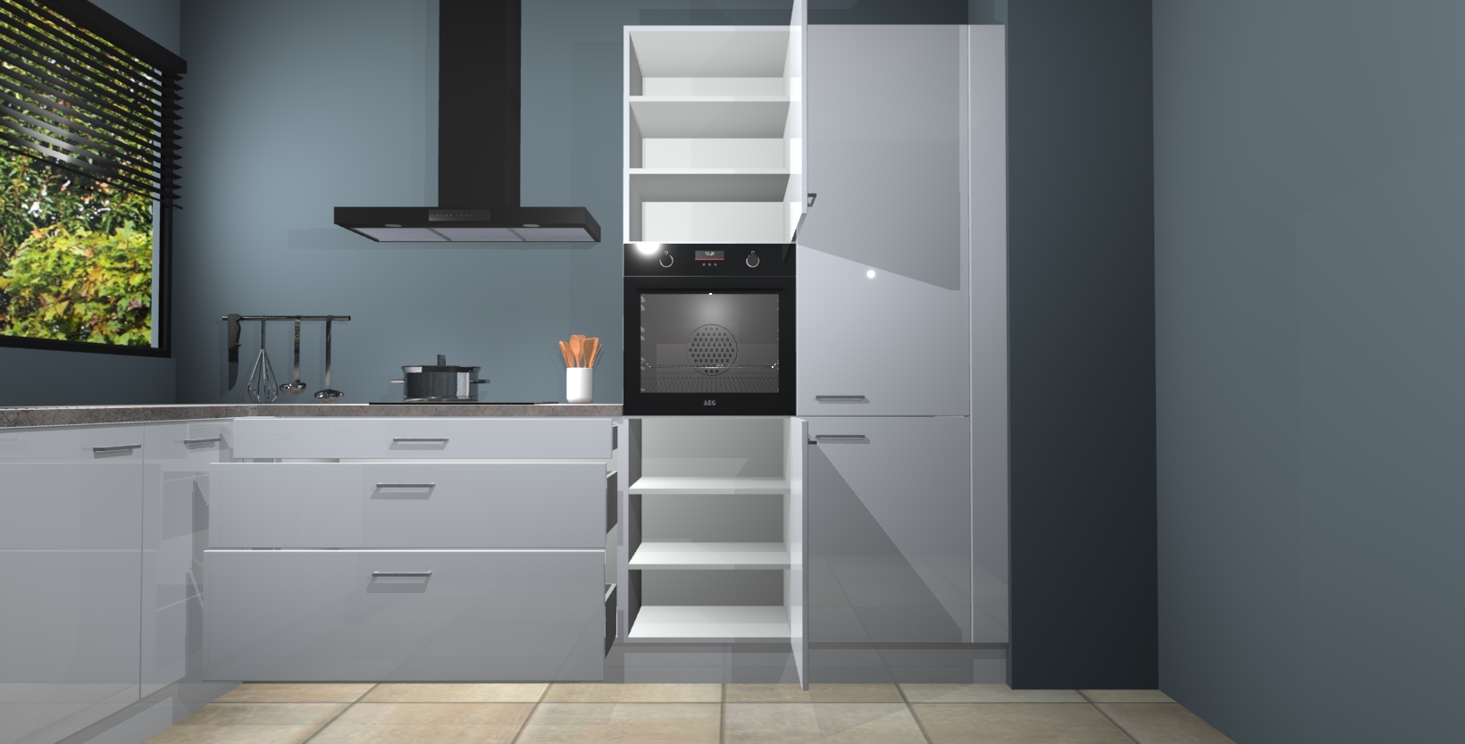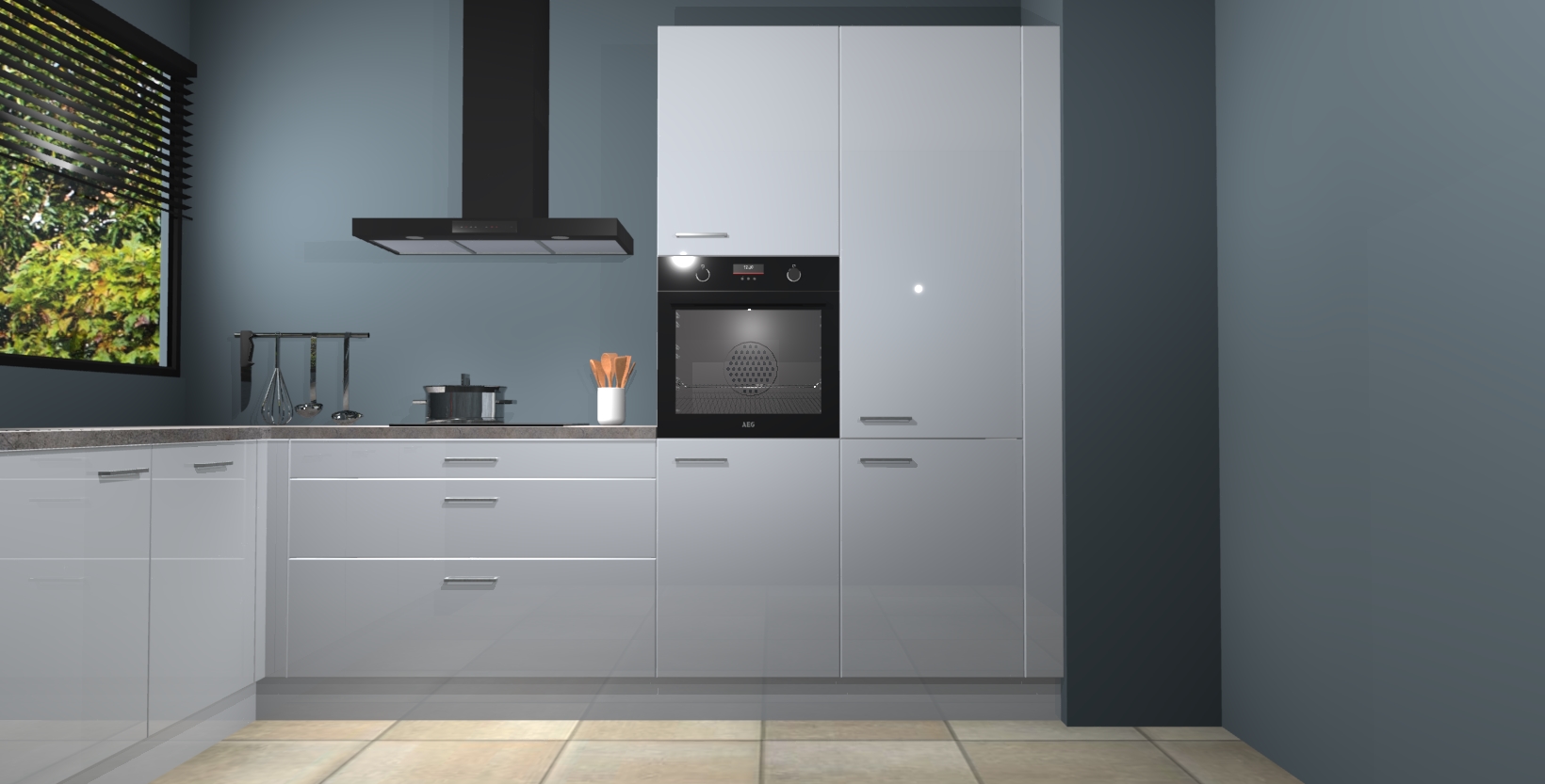 Met een modern, tijdloos design en ruime opslagruimte, zult u zich in no-time thuis voelen in uw nieuwe keuken. Uw leven wordt eenvoudiger met de soft-close deuren die voor het ultieme stille comfort zorgen - geen geluid dat u stoort terwijl u kookt. Ook is de keuken voorzien van 5 ingebouwde apparaten: een oven, inductie kookplaat, afzuigkap, vaatwasser en koelkast. Deze kunnen gemakkelijk na bestelling worden bijgewerkt naar AEG - waardoor uw luxe ervaring compleet is.