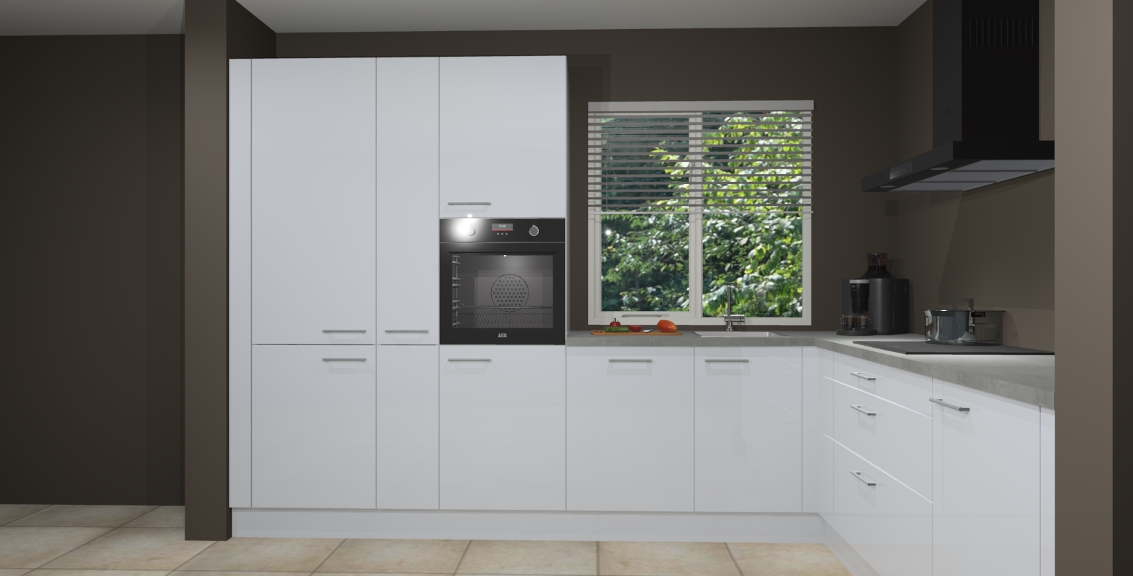 Met een modern, tijdloos design en ruime opslagruimte, zult u zich in no-time thuis voelen in uw nieuwe keuken. Uw leven wordt eenvoudiger met de soft-close deuren die voor het ultieme stille comfort zorgen - geen geluid dat u stoort terwijl u kookt. Ook is de keuken voorzien van 5 ingebouwde apparaten: een oven, inductie kookplaat, afzuigkap, vaatwasser en koelkast. Deze kunnen gemakkelijk na bestelling worden bijgewerkt naar AEG - waardoor uw luxe ervaring compleet is.