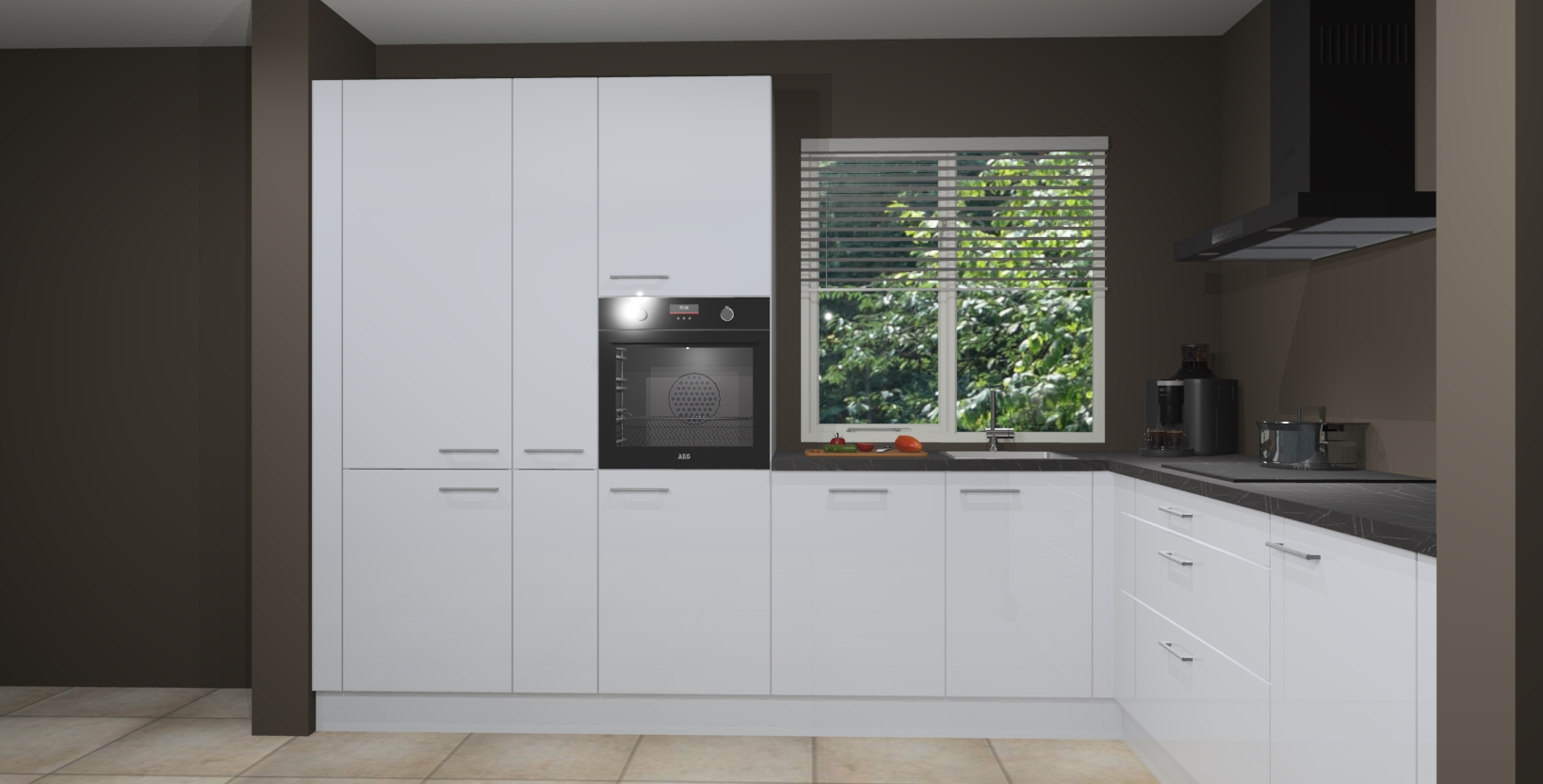 Met een modern, tijdloos design en ruime opslagruimte, zult u zich in no-time thuis voelen in uw nieuwe keuken. Uw leven wordt eenvoudiger met de soft-close deuren die voor het ultieme stille comfort zorgen - geen geluid dat u stoort terwijl u kookt. Ook is de keuken voorzien van 5 ingebouwde apparaten: een oven, inductie kookplaat, afzuigkap, vaatwasser en koelkast. Deze kunnen gemakkelijk na bestelling worden bijgewerkt naar AEG - waardoor uw luxe ervaring compleet is.