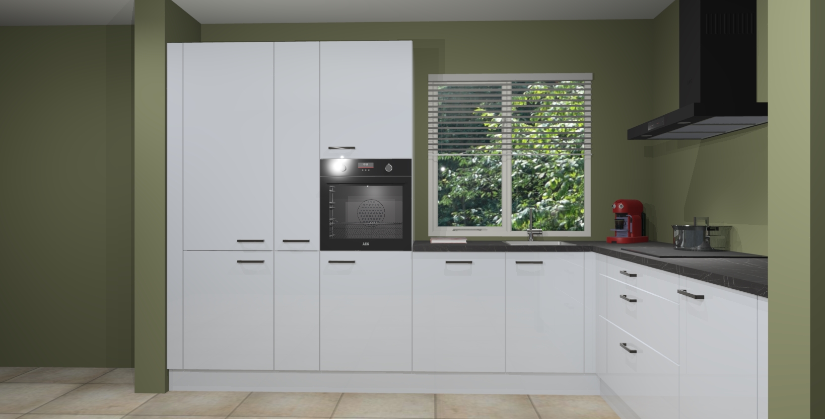 Met een modern, tijdloos design en ruime opslagruimte, zult u zich in no-time thuis voelen in uw nieuwe keuken. Uw leven wordt eenvoudiger met de soft-close deuren die voor het ultieme stille comfort zorgen - geen geluid dat u stoort terwijl u kookt. Ook is de keuken voorzien van 5 ingebouwde apparaten: een oven, inductie kookplaat, afzuigkap, vaatwasser en koelkast. Deze kunnen gemakkelijk na bestelling worden bijgewerkt naar AEG - waardoor uw luxe ervaring compleet is.