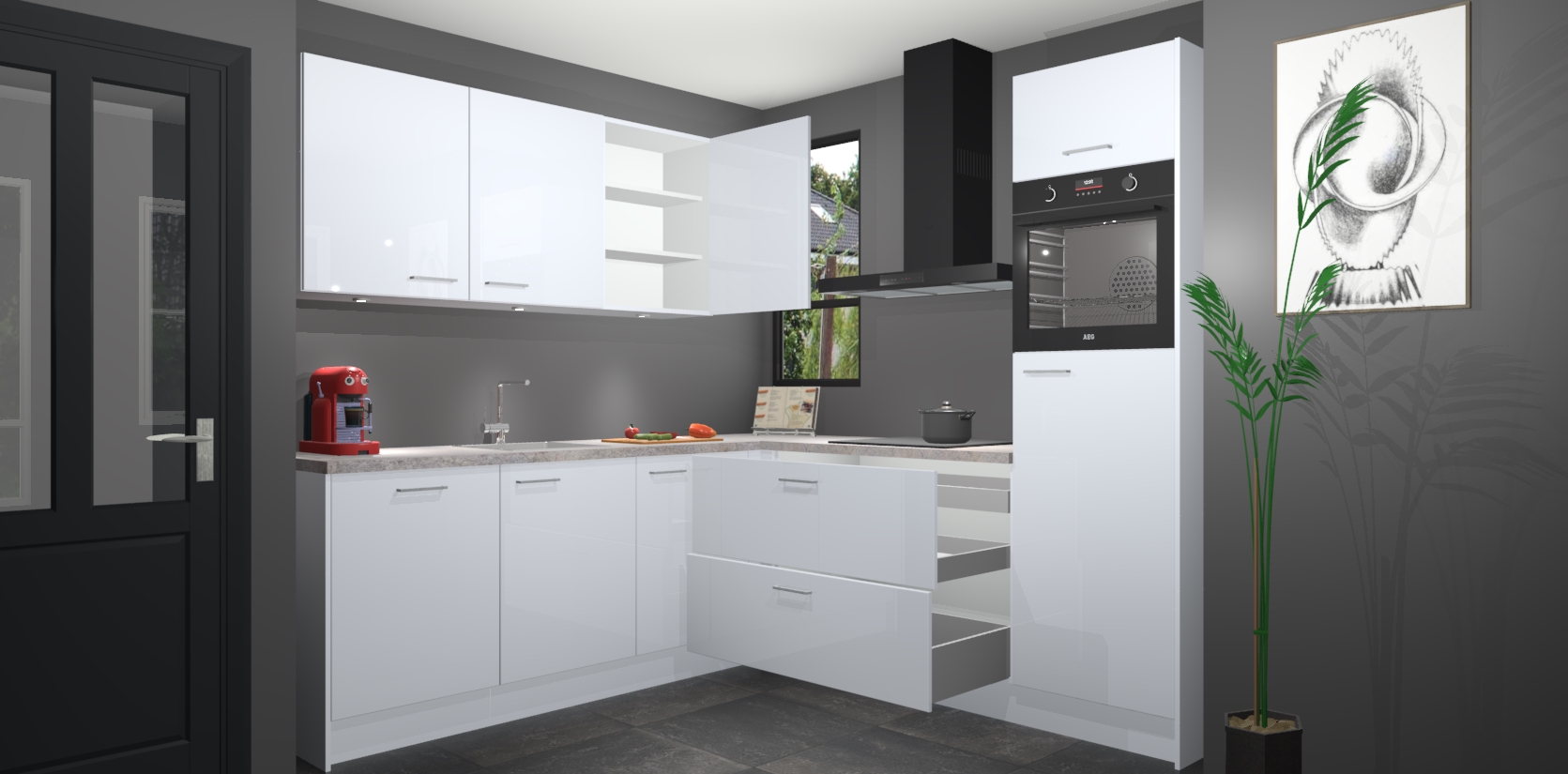 Als extra werd de prijs zo laag mogelijk vastgesteld, zonder aan de kwaliteit te raken. Zo heb je gegarandeerde Duitse keukenkwaliteit waarmee je jarenlang plezier beleeft aan het ontwerp. En dat alles wordt gecombineerd met een supersnelle service van maar liefst 7 weken!