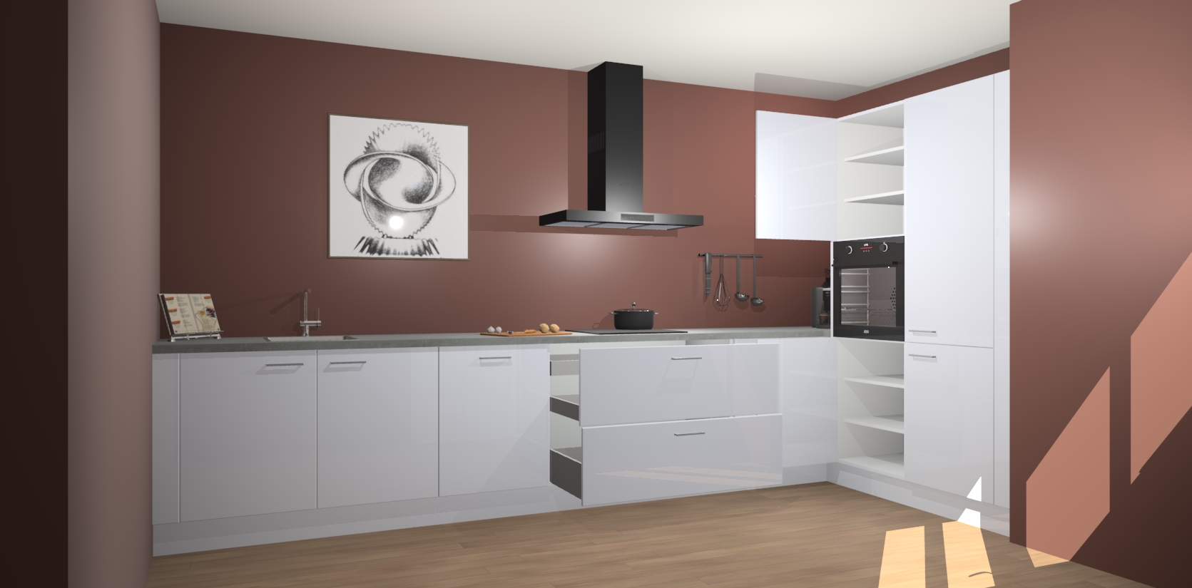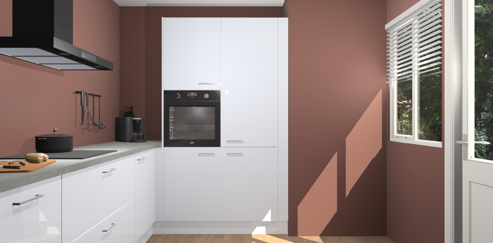 Welkom bij de Sneeuwwitte hoogglans keuken Khao Lak. Deze prachtige keuken zal de komende jaren het middelpunt van de belangstelling in uw huis zijn. Uitgerust met vijf inbouwapparaten komt u nooit kookgereedschap tekort. Bovendien geeft de warme houtlook elke ruimte een uitnodigende en tijdloze uitstraling.