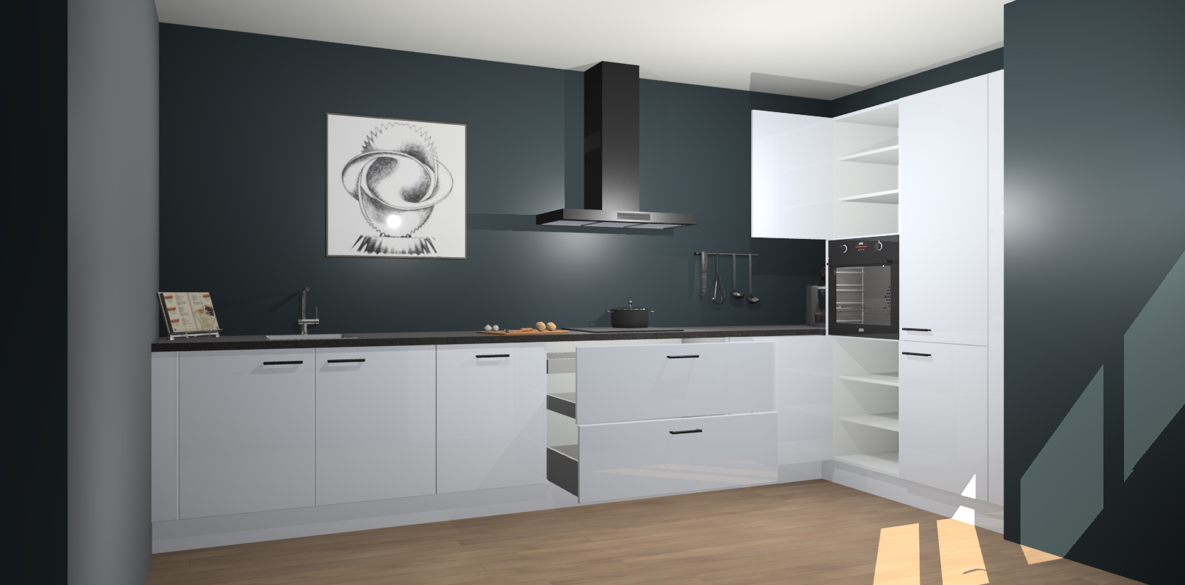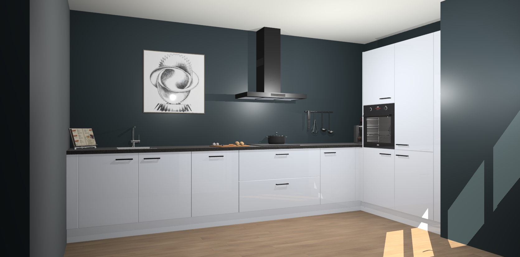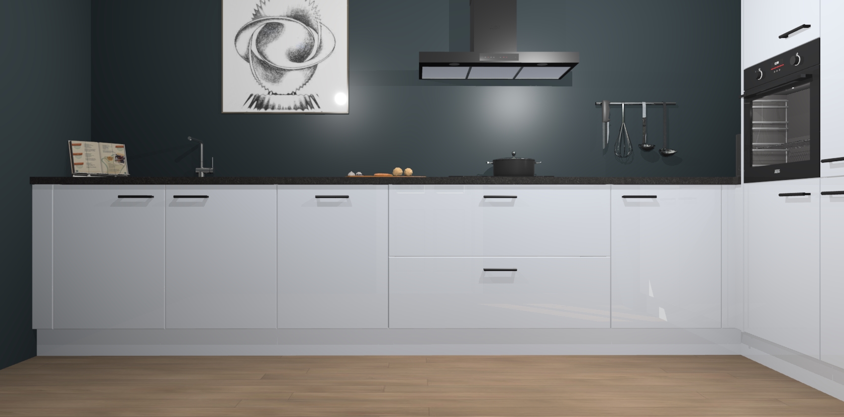 Welkom bij de Sneeuwwitte hoogglans keuken Khao Lak. Deze prachtige keuken zal de komende jaren het middelpunt van de belangstelling in uw huis zijn. Uitgerust met vijf inbouwapparaten komt u nooit kookgereedschap tekort. Bovendien geeft de warme houtlook elke ruimte een uitnodigende en tijdloze uitstraling.