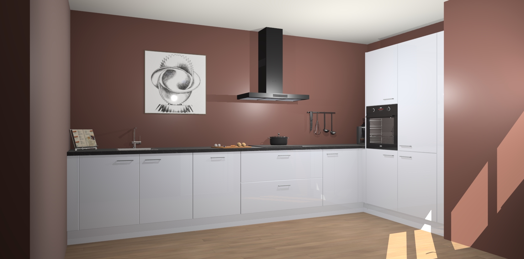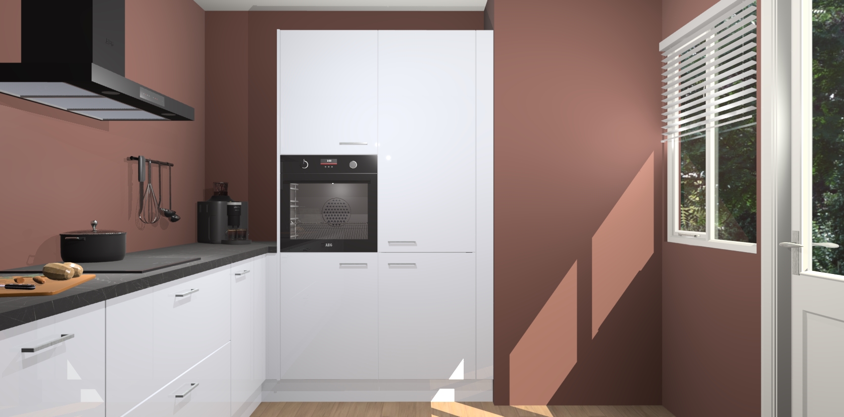 Welkom bij de Sneeuwwitte hoogglans keuken Khao Lak. Deze prachtige keuken zal de komende jaren het middelpunt van de belangstelling in uw huis zijn. Uitgerust met vijf inbouwapparaten komt u nooit kookgereedschap tekort. Bovendien geeft de warme houtlook elke ruimte een uitnodigende en tijdloze uitstraling.