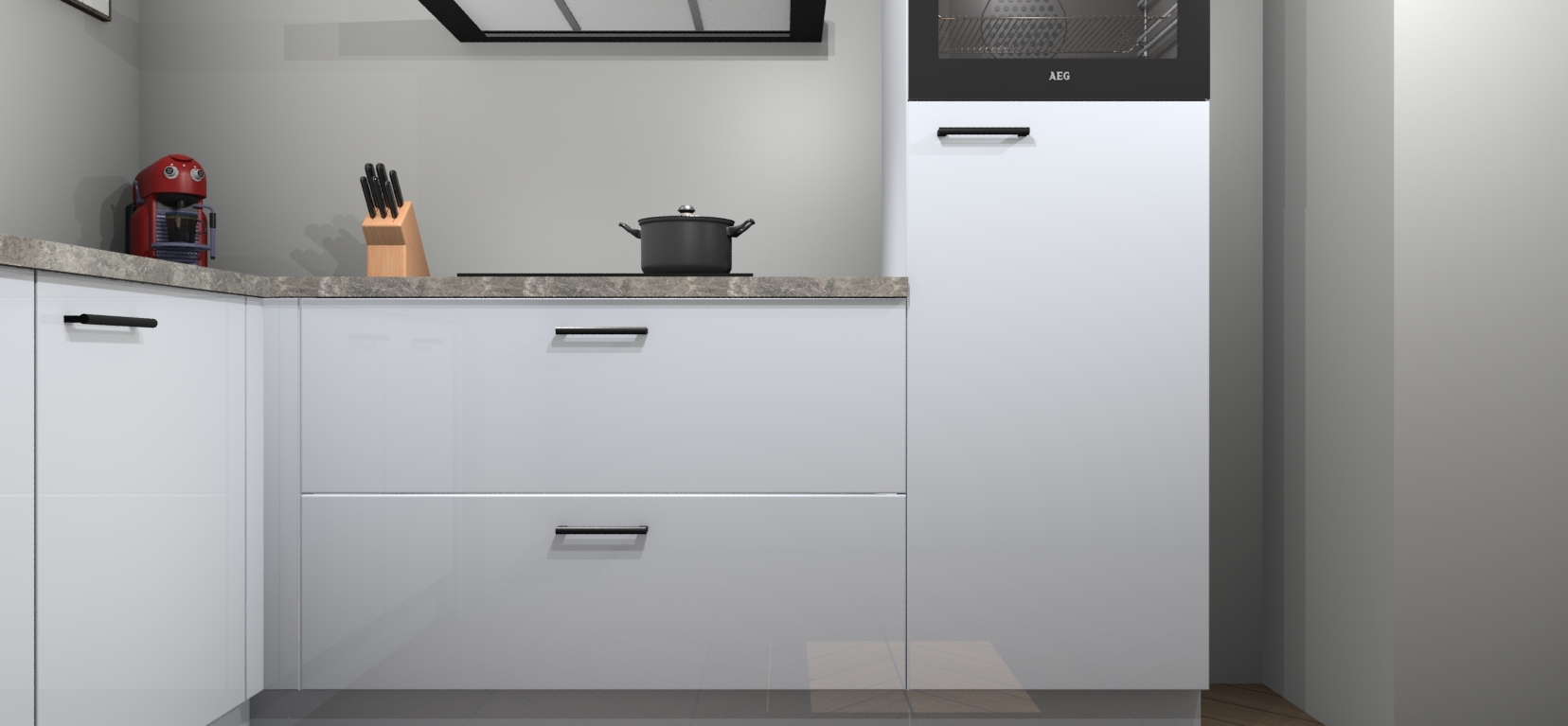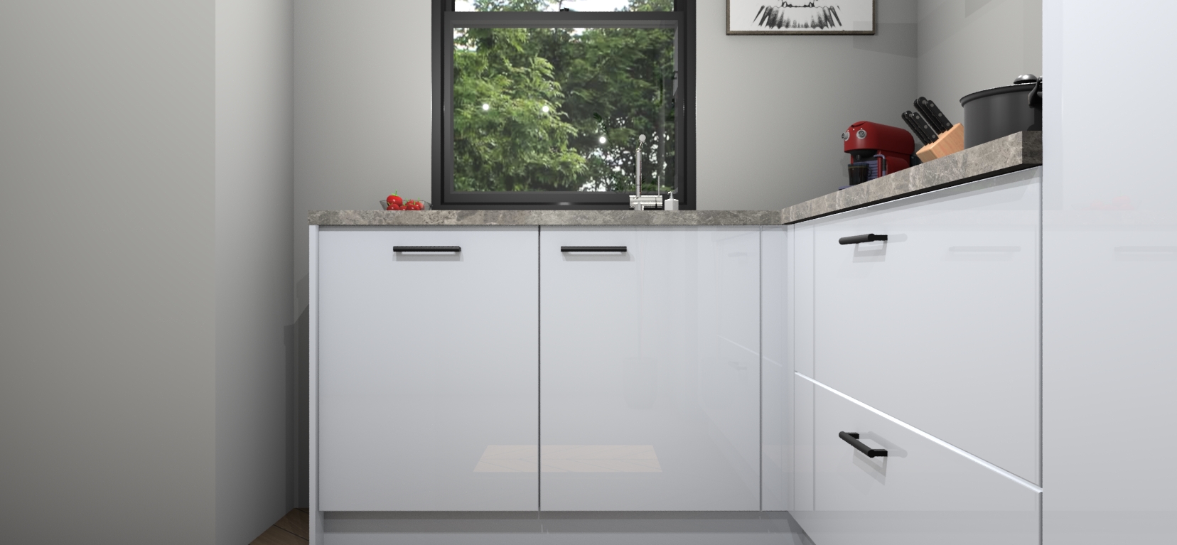Moedige modernisten! De sneeuwwitte hoogglans keuken Kinshasa is het perfecte antwoord op al uw keukendromen. Dit geraffineerde, tijdloze ontwerp combineert strakke kasten met hoogglans details zodat u die dure look krijgt zonder het dure prijskaartje. We weten dat planning en uitvoering de sleutels zijn tot een geslaagde keukenrenovatie, dus hebben we ervoor gezorgd dat we vijf inbouwapparaten in ons pakket hebben: een oven, inductiekookplaat, afzuigkap, vaatwasser en koelkast. Deze kunnen na bestelling gemakkelijk worden uitgebreid voor nog meer gemak.
