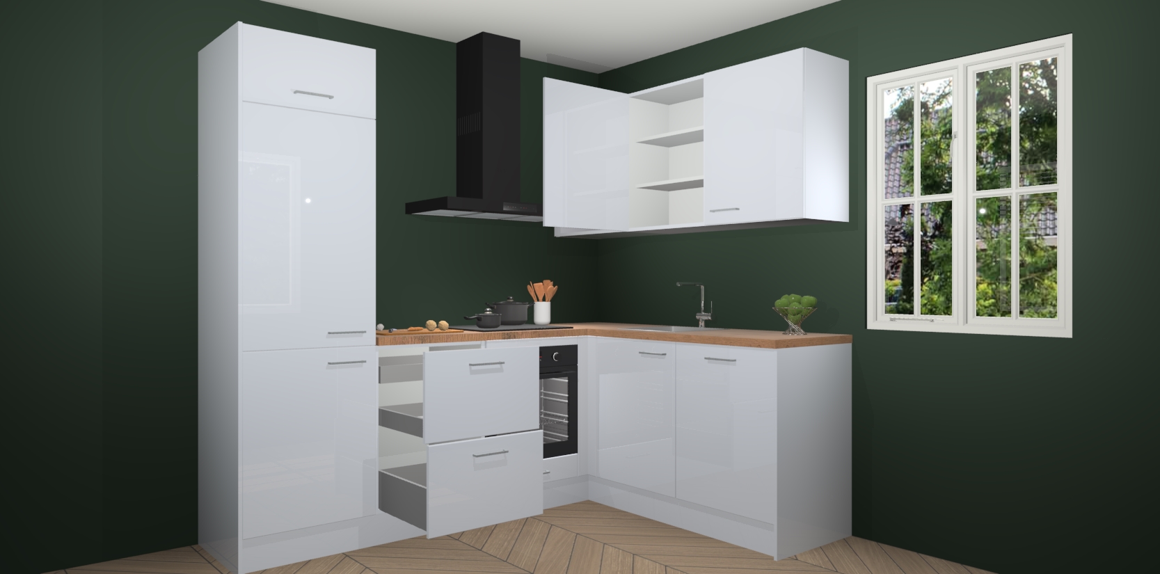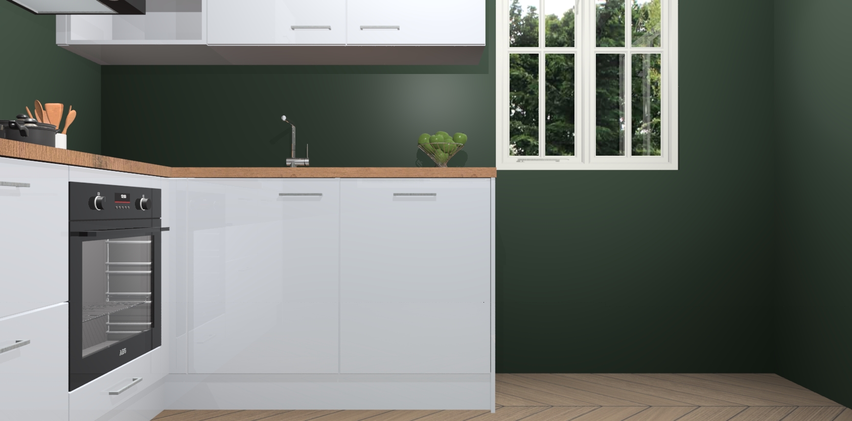 Dit model biedt u voldoende opbergruimte en vijf ingebouwde apparaten: een oven, inductiekookplaat, afzuigkap, vaatwasser en koelkast. Deze apparaten kunnen gemakkelijk worden geüpgrade naar AEG nadat u besteld heeft. De verschillende laden en kastjes bevatten softclose-deuren waardoor ze gezellig dichtvallen met een geruststellend helemaal geruisloos geluid. En dat is nog niet alles! We garanderen ook dat de prijs altijd laag blijft - dus haal nu uw Sneeuwwitte hoogglans keuken Krakau terwijl het kan.