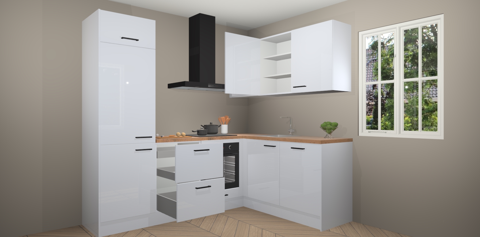 Als u op zoek bent naar een keuken die moderne stijl en elegantie combineert, is de Sneeuwwitte hoogglans keuken Krakau precies wat u zoekt! De perfecte combinatie van modern design en tijdloos kwaliteitsmateriaal zorgen voor een unieke keuken waar u met trots mee kunt pronken.