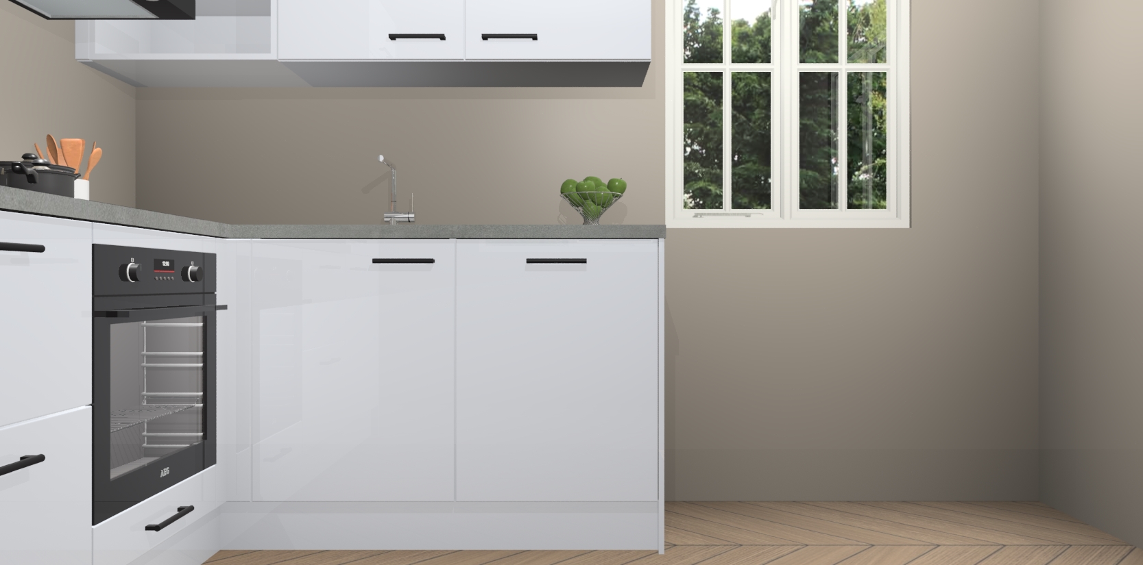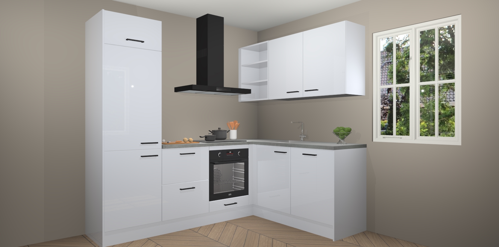 Dit model biedt u voldoende opbergruimte en vijf ingebouwde apparaten: een oven, inductiekookplaat, afzuigkap, vaatwasser en koelkast. Deze apparaten kunnen gemakkelijk worden geüpgrade naar AEG nadat u besteld heeft. De verschillende laden en kastjes bevatten softclose-deuren waardoor ze gezellig dichtvallen met een geruststellend helemaal geruisloos geluid. En dat is nog niet alles! We garanderen ook dat de prijs altijd laag blijft - dus haal nu uw Sneeuwwitte hoogglans keuken Krakau terwijl het kan.