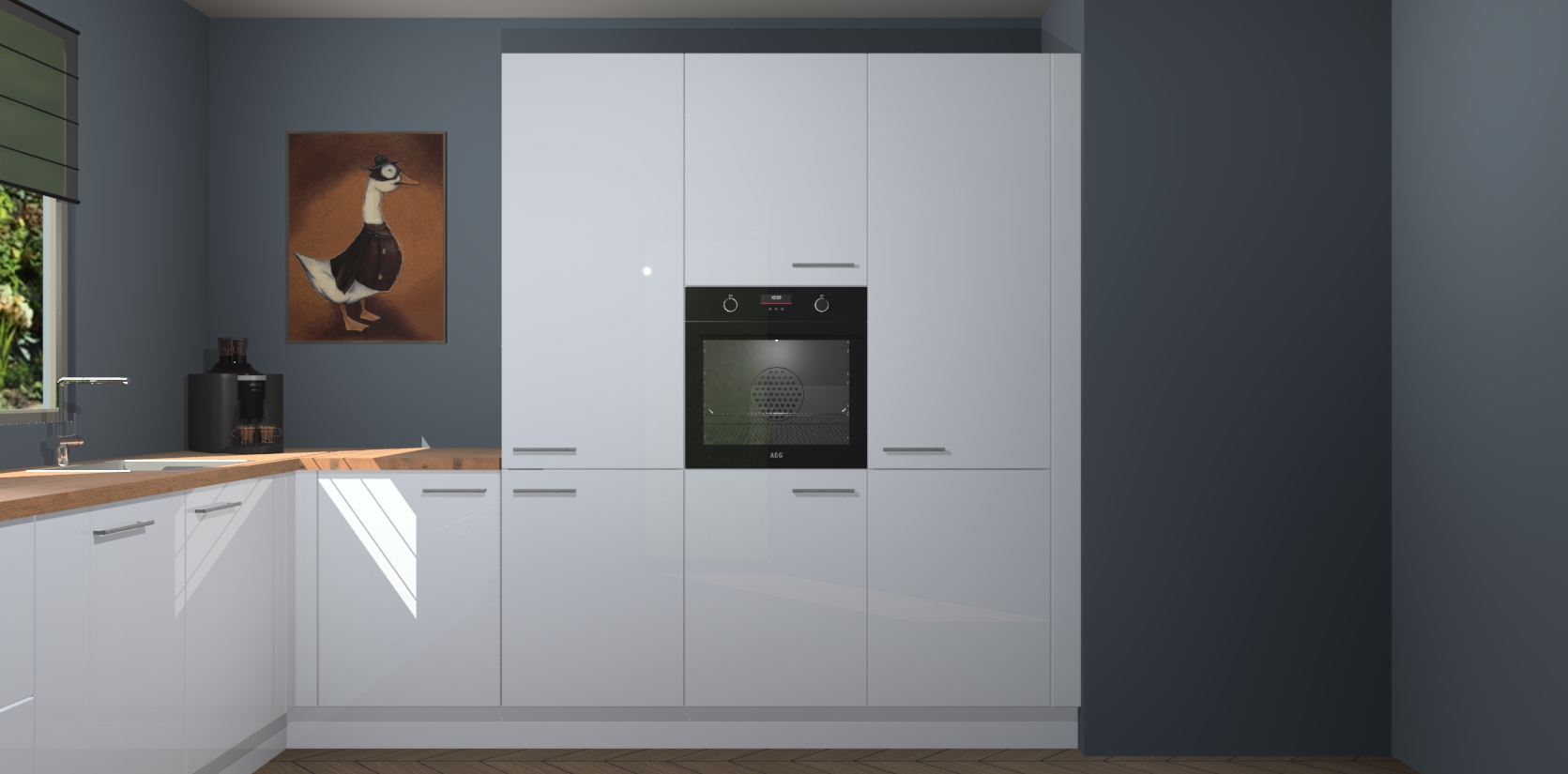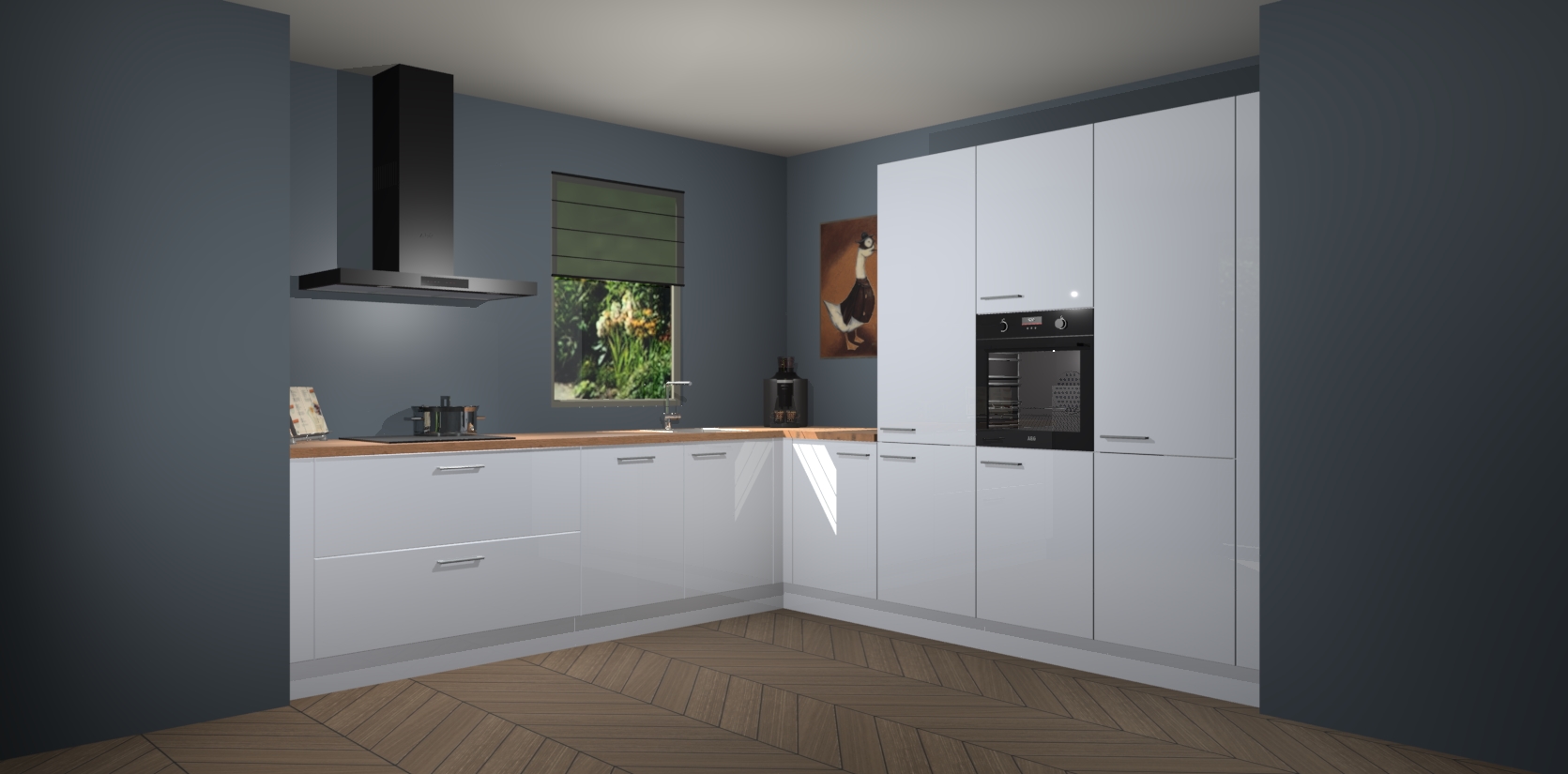 Welkom bij de Sneeuwwitte hoogglans keuken Laos. Deze prachtige keuken zal de komende jaren het middelpunt van de belangstelling in uw huis zijn. Uitgerust met vijf inbouwapparaten komt u nooit kookgereedschap tekort. Bovendien geeft de warme houtlook elke ruimte een uitnodigende en tijdloze uitstraling.