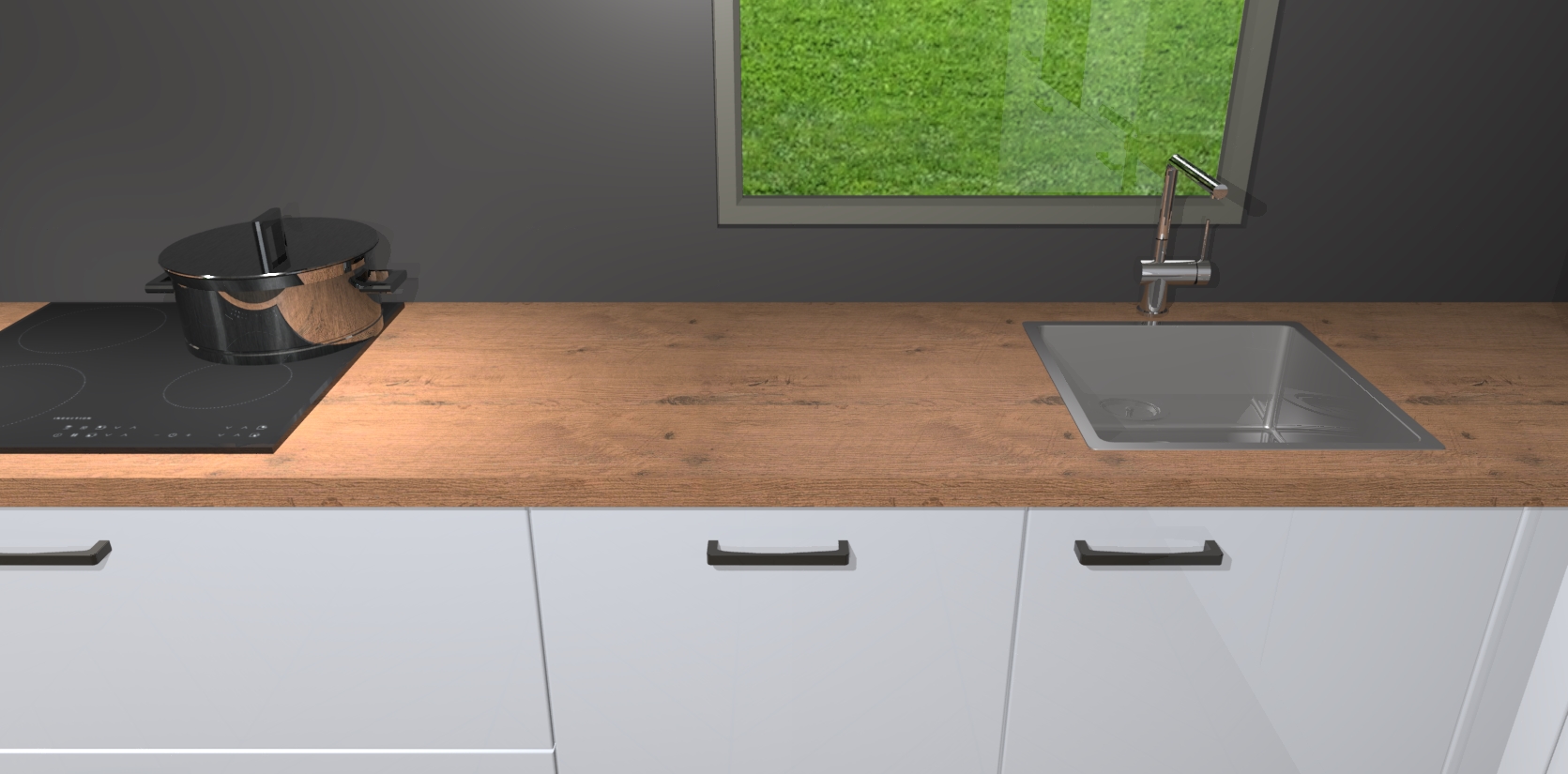 - Bij een hoekwerkblad zijn de hoeken in gevreesd en op maat gemaakt
