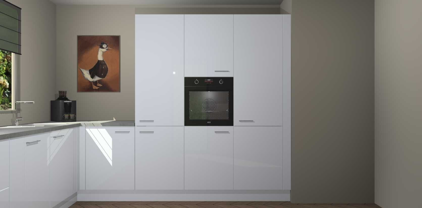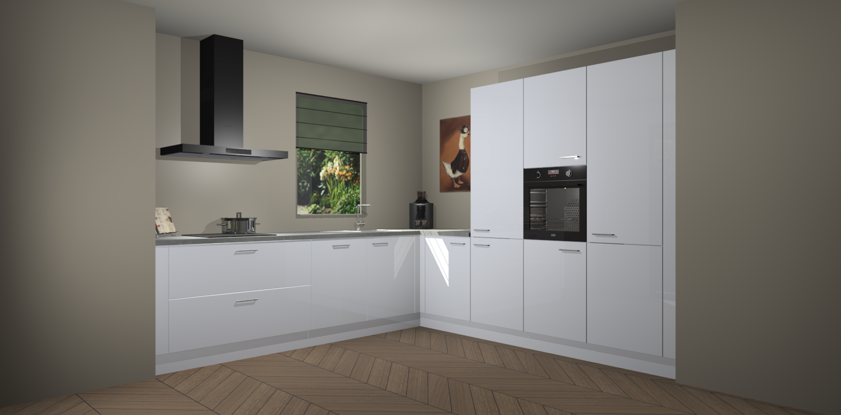Welkom bij de Sneeuwwitte hoogglans keuken Laos. Deze prachtige keuken zal de komende jaren het middelpunt van de belangstelling in uw huis zijn. Uitgerust met vijf inbouwapparaten komt u nooit kookgereedschap tekort. Bovendien geeft de warme houtlook elke ruimte een uitnodigende en tijdloze uitstraling.