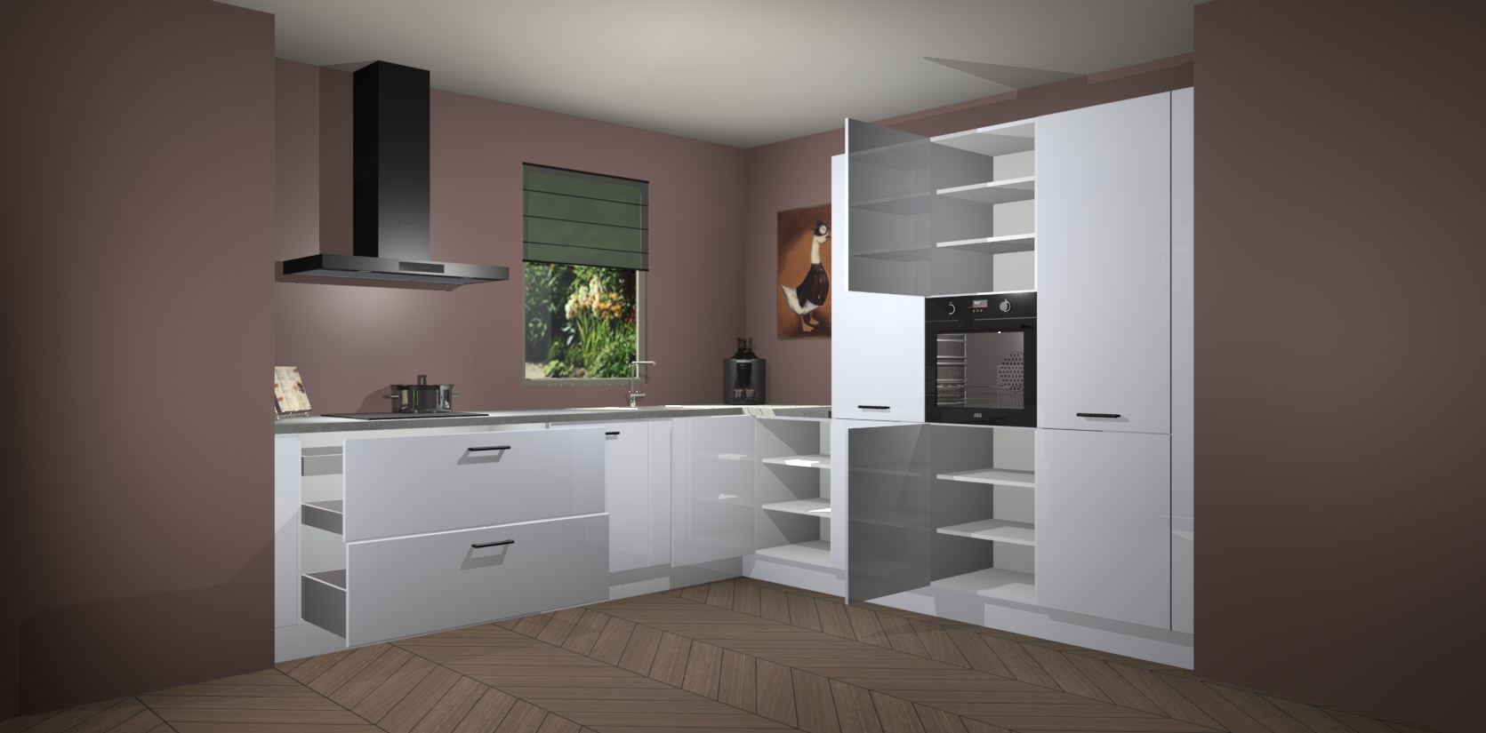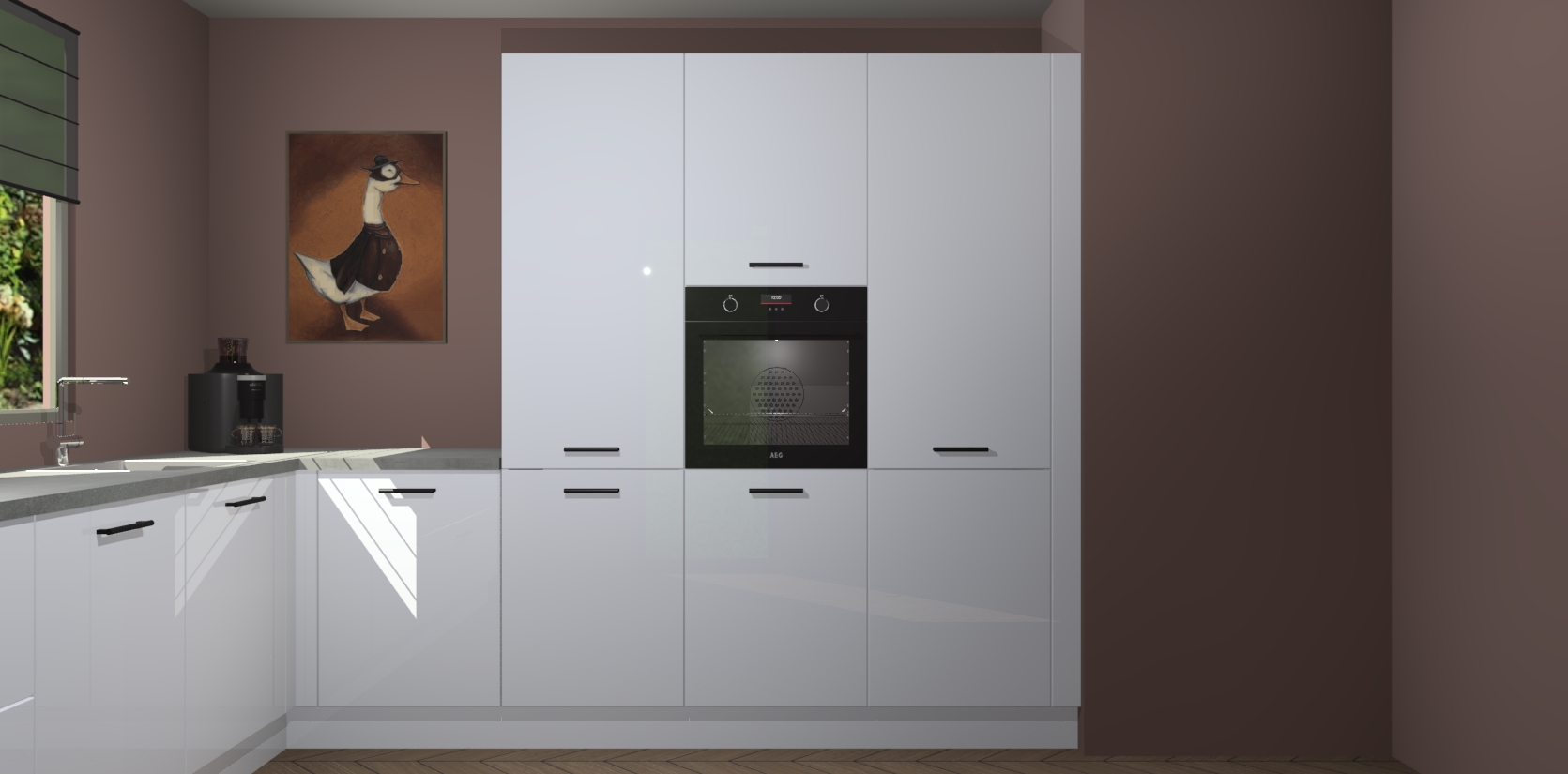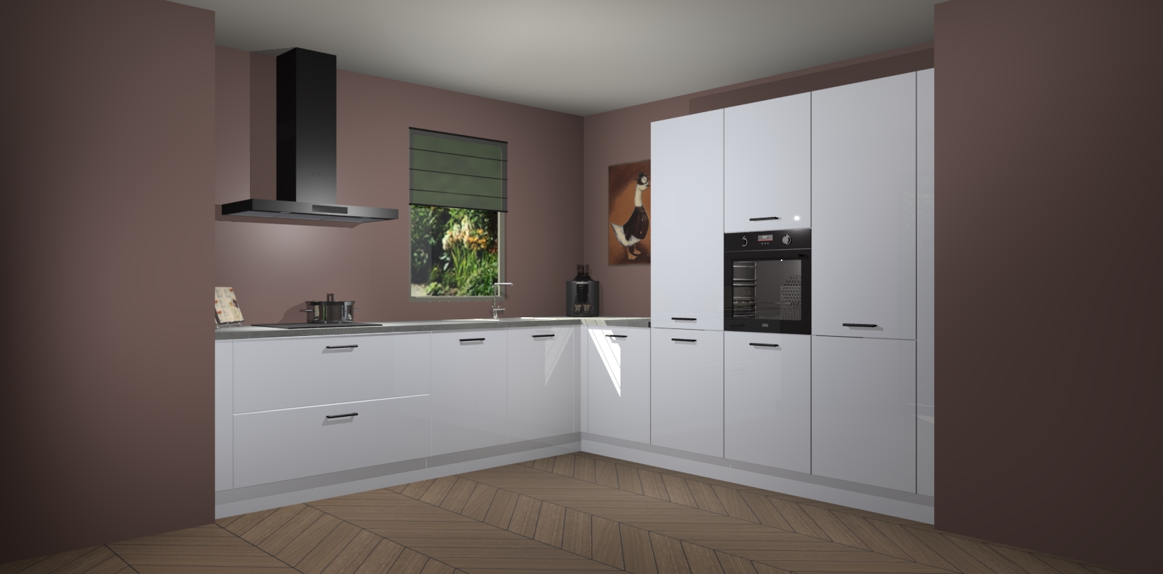 Welkom bij de Sneeuwwitte hooglans keuken Laos. Deze prachtige keuken zal de komende jaren het middelpunt van de belangstelling in uw huis zijn. Uitgerust met vijf inbouwapparaten komt u nooit kookgereedschap tekort. Bovendien geeft de warme houtlook elke ruimte een uitnodigende en tijdloze uitstraling.