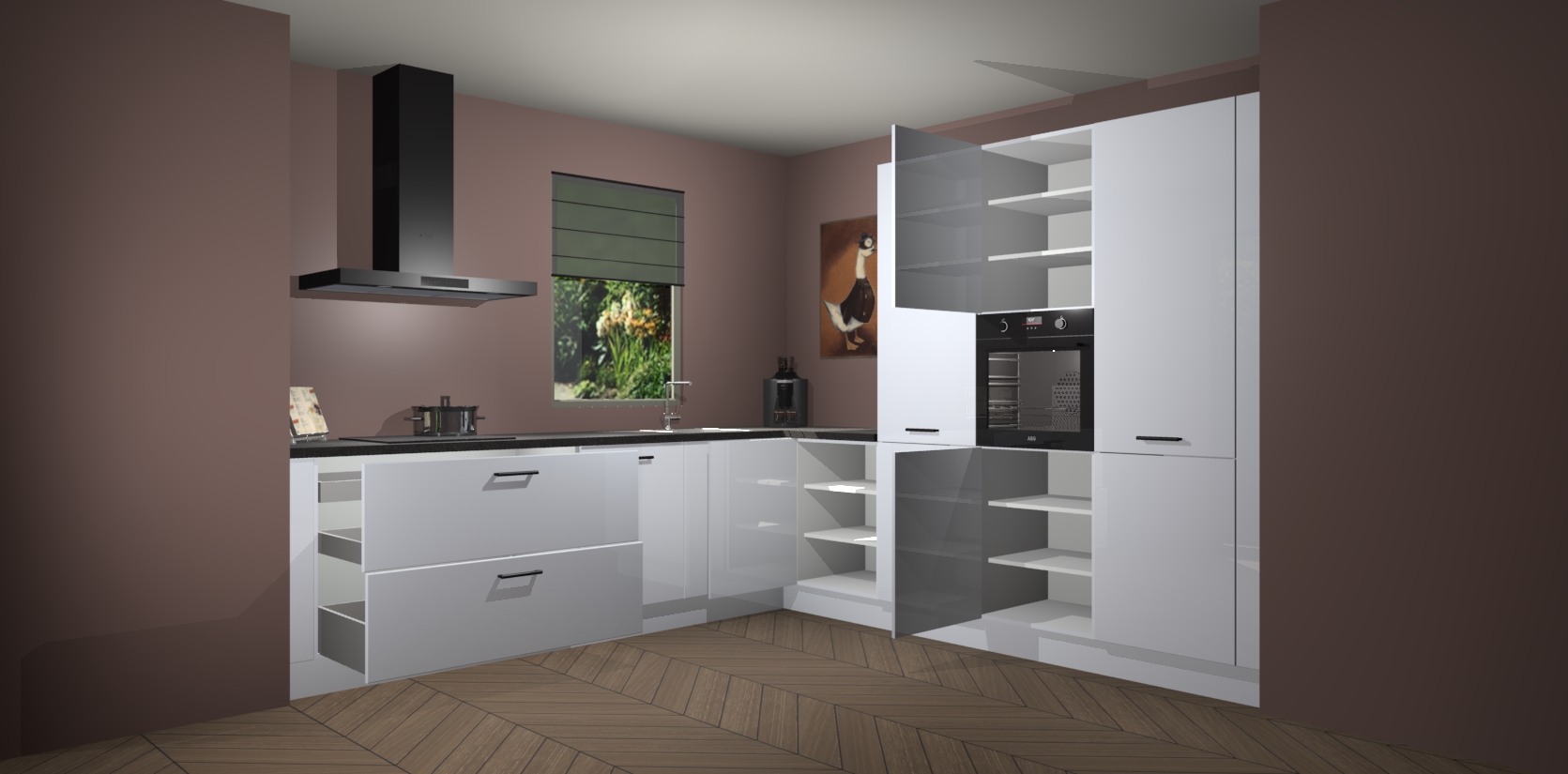 Welkom bij de Sneeuwwitte hooglans keuken Laos. Deze prachtige keuken zal de komende jaren het middelpunt van de belangstelling in uw huis zijn. Uitgerust met vijf inbouwapparaten komt u nooit kookgereedschap tekort. Bovendien geeft de warme houtlook elke ruimte een uitnodigende en tijdloze uitstraling.