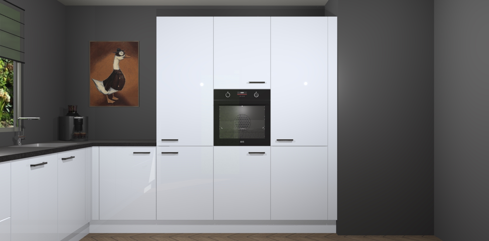 Welkom bij de Sneeuwwitte hoogglans keuken Laos. Deze prachtige keuken zal de komende jaren het middelpunt van de belangstelling in uw huis zijn. Uitgerust met vijf inbouwapparaten komt u nooit kookgereedschap tekort. Bovendien geeft de warme houtlook elke ruimte een uitnodigende en tijdloze uitstraling.