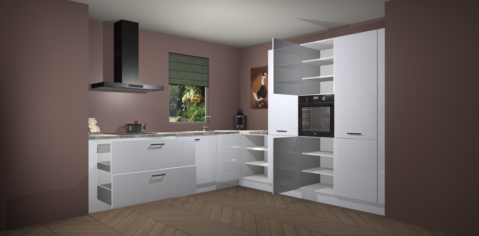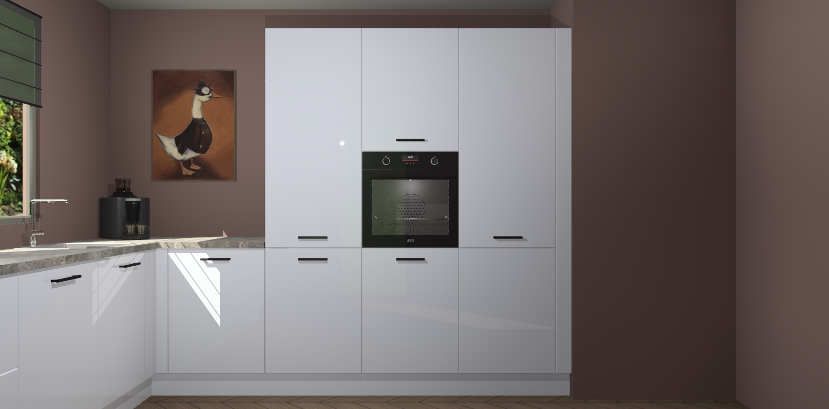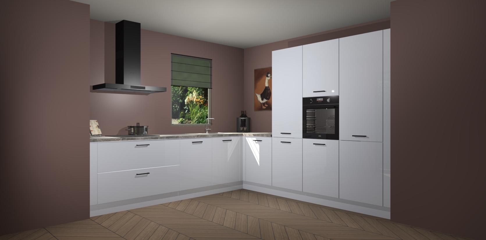 Welkom bij de Sneeuwwitte hooglans keuken Laos. Deze prachtige keuken zal de komende jaren het middelpunt van de belangstelling in uw huis zijn. Uitgerust met vijf inbouwapparaten komt u nooit kookgereedschap tekort. Bovendien geeft de warme houtlook elke ruimte een uitnodigende en tijdloze uitstraling.