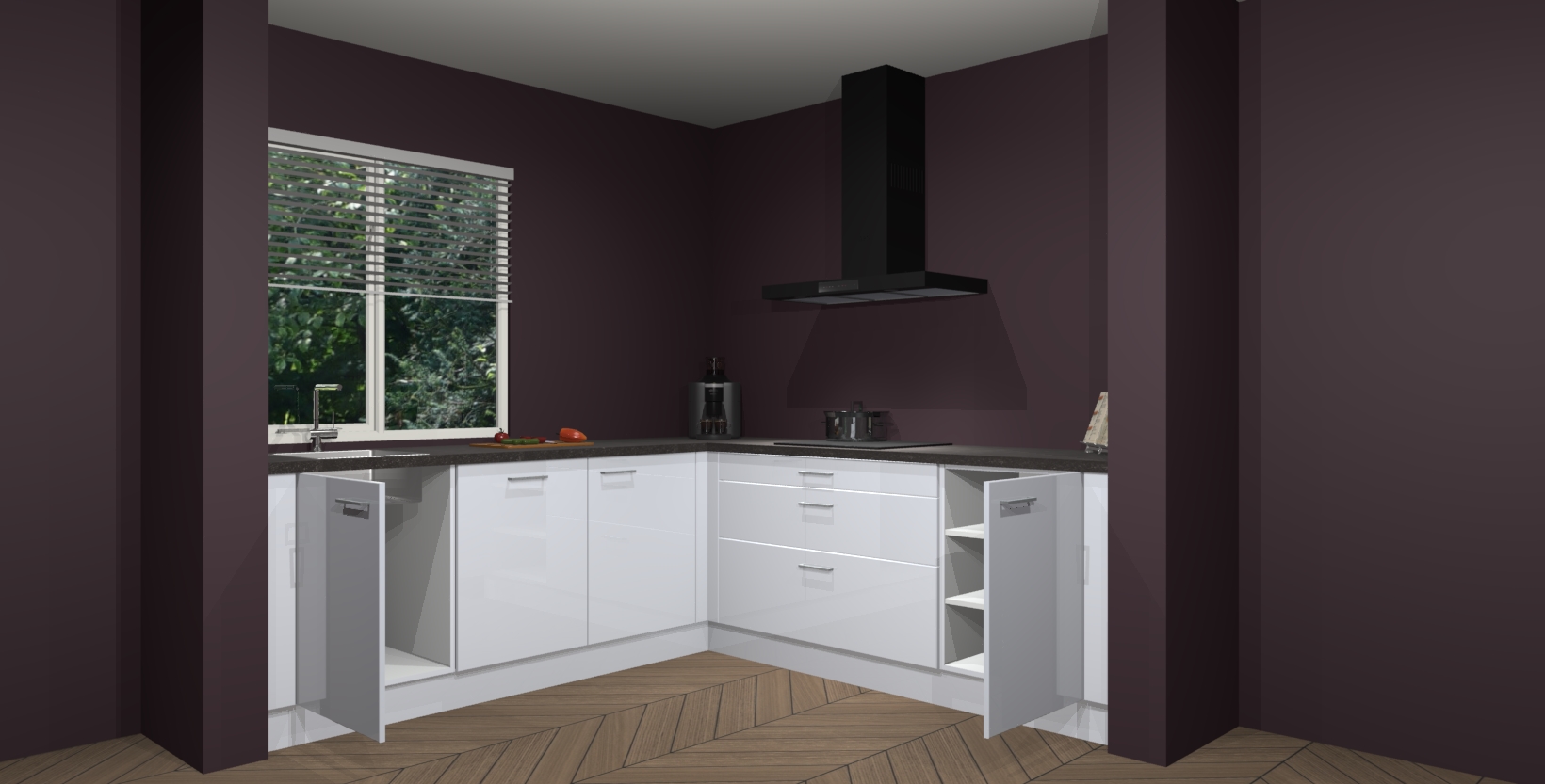 Hoekonderkast met le-mans systeem