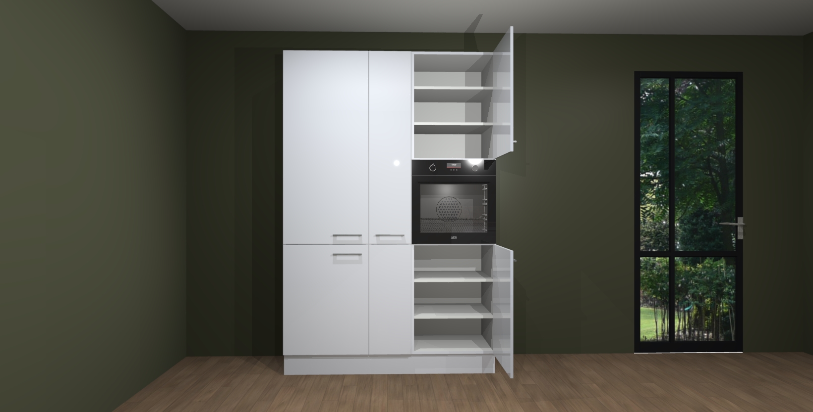 Met een modern, tijdloos design en ruime opslagruimte, zult u zich in no-time thuis voelen in uw nieuwe keuken. Uw leven wordt eenvoudiger met de soft-close deuren die voor het ultieme stille comfort zorgen - geen geluid dat u stoort terwijl u kookt. Ook is de keuken voorzien van 5 ingebouwde apparaten: een oven, inductie kookplaat, afzuigkap, vaatwasser en koelkast. Deze kunnen gemakkelijk na bestelling worden bijgewerkt naar AEG - waardoor uw luxe ervaring compleet is.