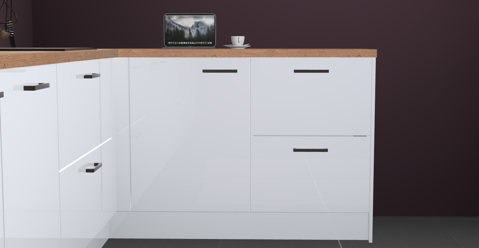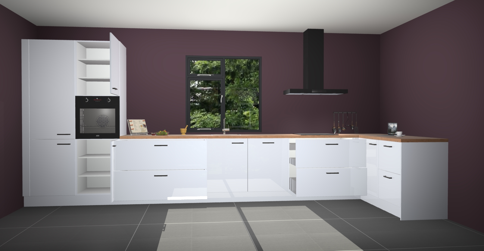 De Sneeuwwitte hoogglans keuken Lille wordt geleverd met vijf inbouwapparaten - een oven, inductiekookplaat, afzuigkap, vaatwasser en koelkast. Maar dat is nog niet alles! Na bestelling kunnen deze apparaten eenvoudig worden geüpgraded naar premium AEG-apparatuur. Bovendien is er zelfs de optie om de oven te vervangen door een combimagnetron of uw inductiekookplaat te vervangen door een kookplaat met geïntegreerde afzuiging.