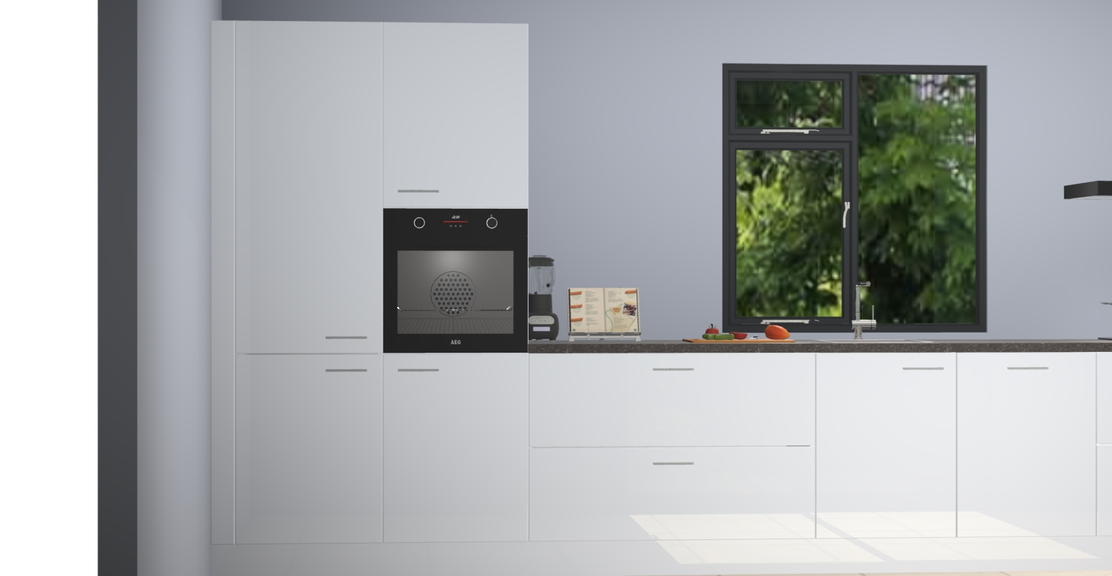 De Sneeuwwitte hoogglans keuken Lille wordt geleverd met vijf inbouwapparaten - een oven, inductiekookplaat, afzuigkap, vaatwasser en koelkast. Maar dat is nog niet alles! Na bestelling kunnen deze apparaten eenvoudig worden geüpgraded naar premium AEG-apparatuur. Bovendien is er zelfs de optie om de oven te vervangen door een combimagnetron of uw inductiekookplaat te vervangen door een kookplaat met geïntegreerde afzuiging.