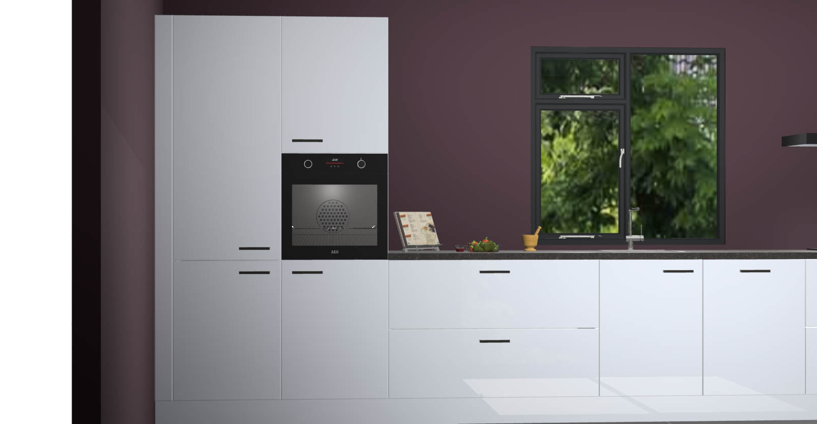De Sneeuwwitte hoogglans keuken Lille wordt geleverd met vijf inbouwapparaten - een oven, inductiekookplaat, afzuigkap, vaatwasser en koelkast. Maar dat is nog niet alles! Na bestelling kunnen deze apparaten eenvoudig worden geüpgraded naar premium AEG-apparatuur. Bovendien is er zelfs de optie om de oven te vervangen door een combimagnetron of uw inductiekookplaat te vervangen door een kookplaat met geïntegreerde afzuiging.