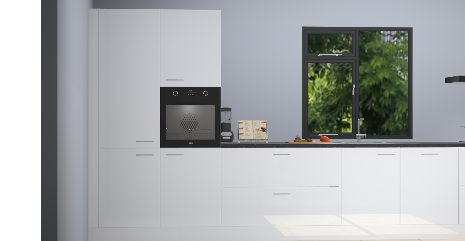 De Sneeuwwitte hoogglans keuken Lille wordt geleverd met vijf inbouwapparaten - een oven, inductiekookplaat, afzuigkap, vaatwasser en koelkast. Maar dat is nog niet alles! Na bestelling kunnen deze apparaten eenvoudig worden geüpgraded naar premium AEG-apparatuur. Bovendien is er zelfs de optie om de oven te vervangen door een combimagnetron of uw inductiekookplaat te vervangen door een kookplaat met geïntegreerde afzuiging.