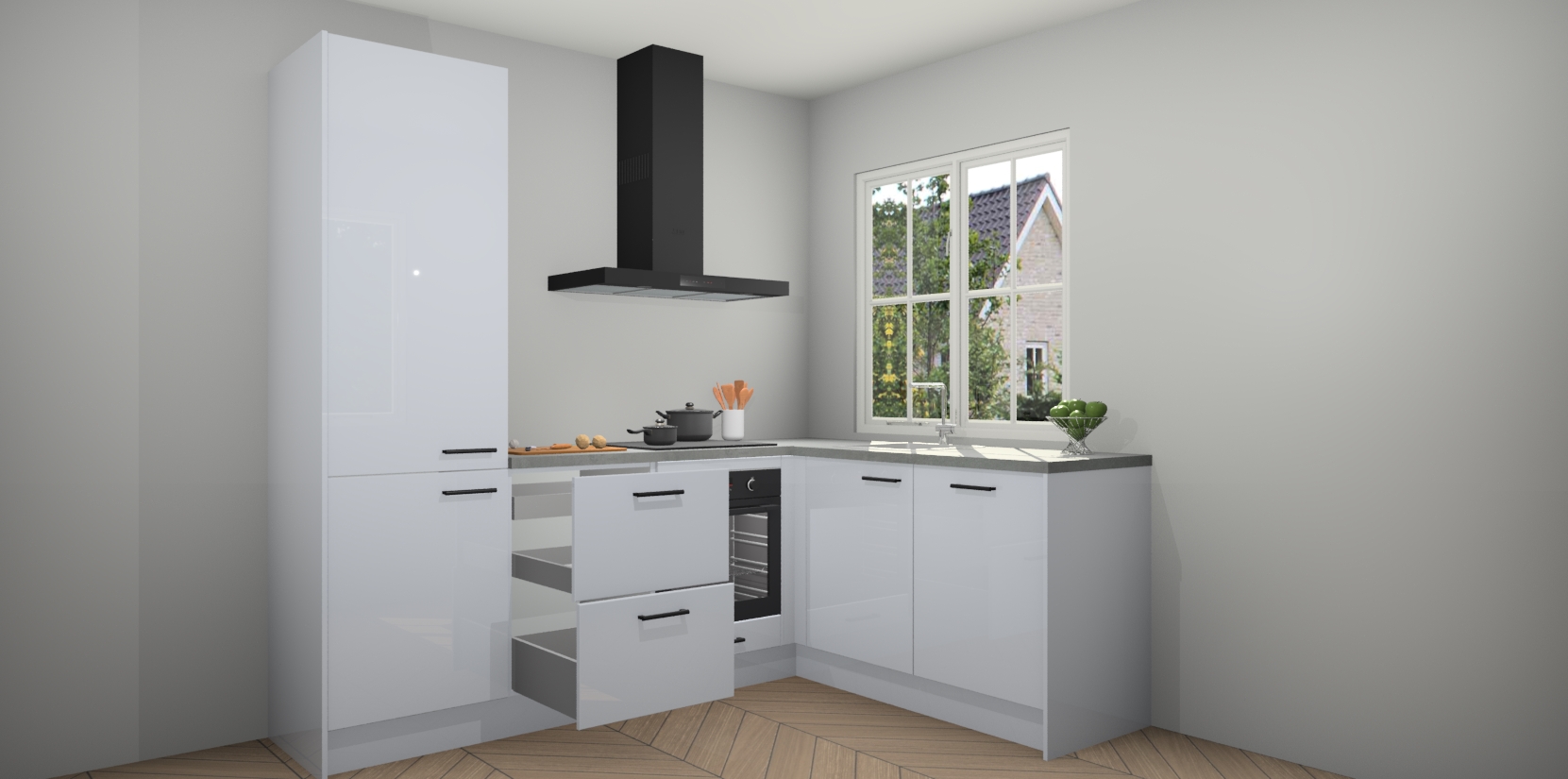 De Sneeuwwitte hoogglans keuken Linz is de perfecte keuze voor uw nieuwe moderne en tijdloze keuken. Ga voor moderne en tijdloze elegantie in uw keuken. De prachtige hoekkeuken biedt een verfrissende kijk op de manier waarop we ons vertrouwde keukenontwerp kunnen aanpassen in een nieuwe stijl. Één blik om alles te zien: zo mooi dat het bijna magisch lijkt.