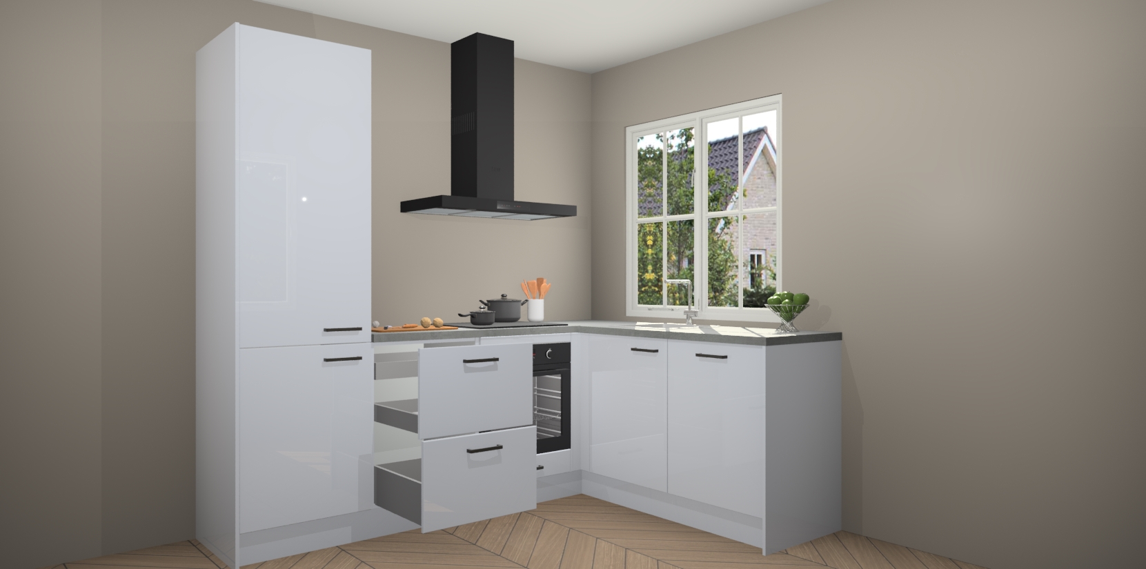 De Sneeuwwitte hoogglans keuken Linz is de perfecte keuze voor uw nieuwe moderne en tijdloze keuken. Ga voor moderne en tijdloze elegantie in uw keuken. De prachtige hoekkeuken biedt een verfrissende kijk op de manier waarop we ons vertrouwde keukenontwerp kunnen aanpassen in een nieuwe stijl. Één blik om alles te zien: zo mooi dat het bijna magisch lijkt.