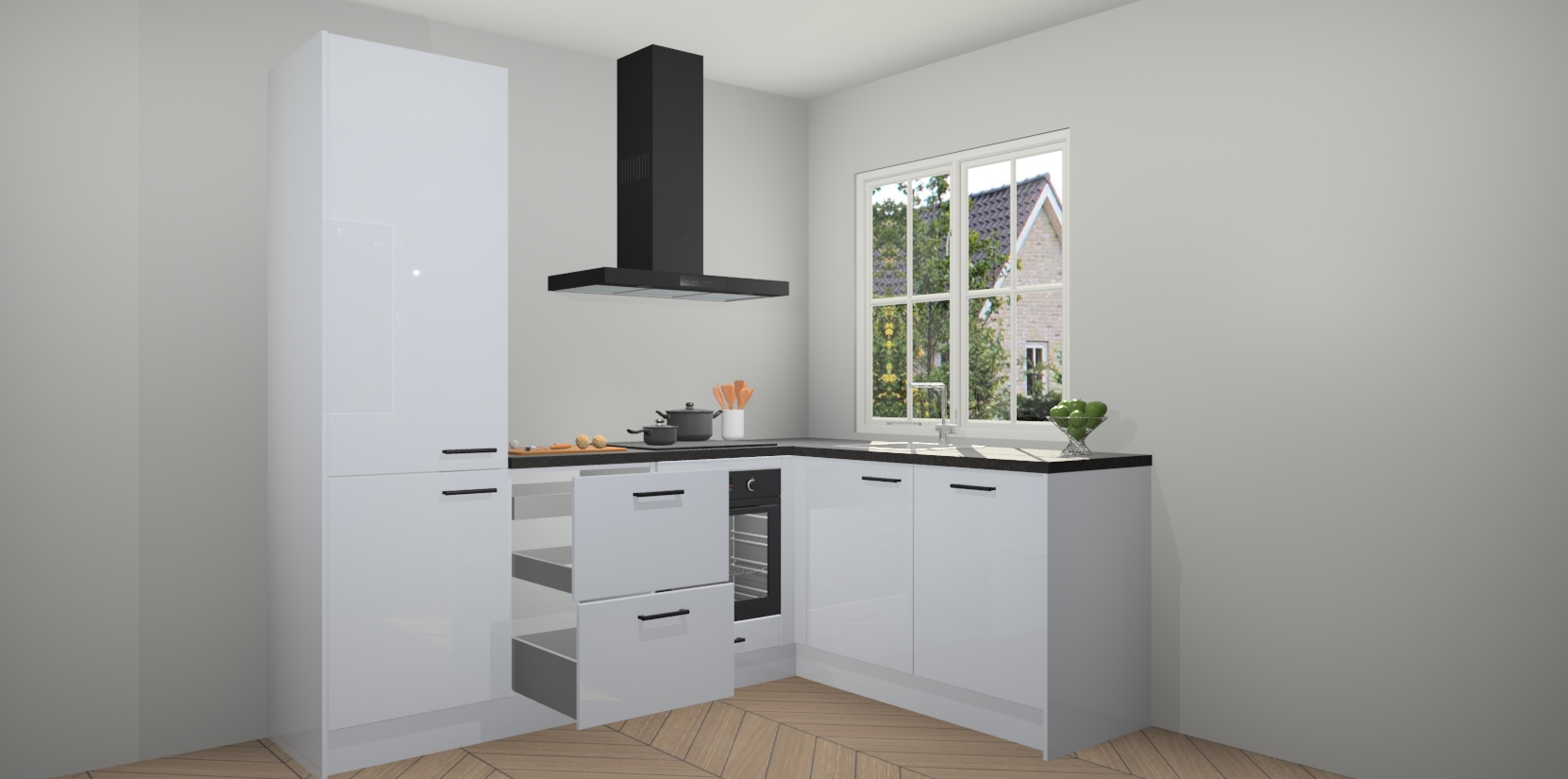 De Sneeuwwitte hoogglans keuken Linz is de perfecte keuze voor uw nieuwe moderne en tijdloze keuken. Ga voor moderne en tijdloze elegantie in uw keuken. De prachtige hoekkeuken biedt een verfrissende kijk op de manier waarop we ons vertrouwde keukenontwerp kunnen aanpassen in een nieuwe stijl. Één blik om alles te zien: zo mooi dat het bijna magisch lijkt.