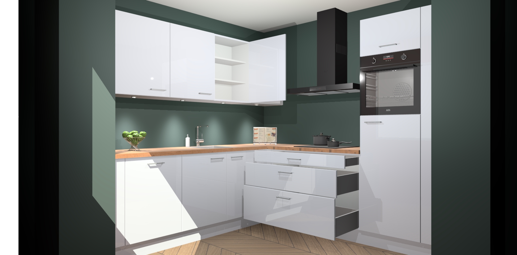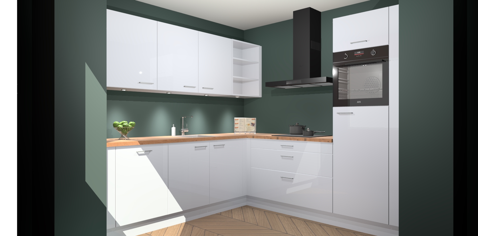 Met een modern, tijdloos design en ruime opslagruimte, zult u zich in no-time thuis voelen in uw nieuwe keuken. Uw leven wordt eenvoudiger met de soft-close deuren die voor het ultieme stille comfort zorgen - geen geluid dat u stoort terwijl u kookt. Ook is de keuken voorzien van 5 ingebouwde apparaten: een oven, inductie kookplaat, afzuigkap, vaatwasser en koelkast. Deze kunnen gemakkelijk na bestelling worden bijgewerkt naar AEG - waardoor uw luxe ervaring compleet is.