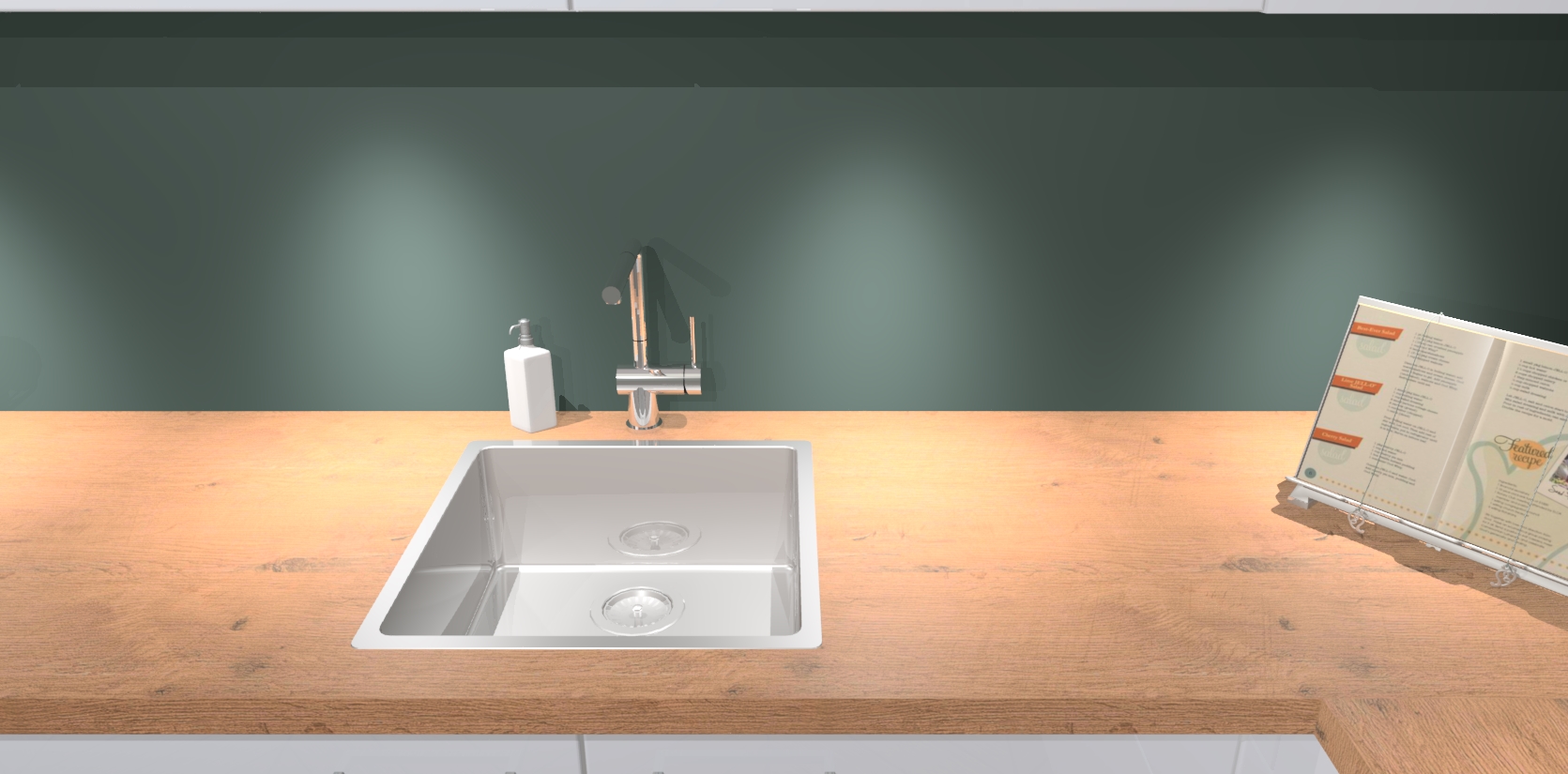 • De spoelbak is nog niet in gevreesd, dit dient tijdens het werk gedaan te worden