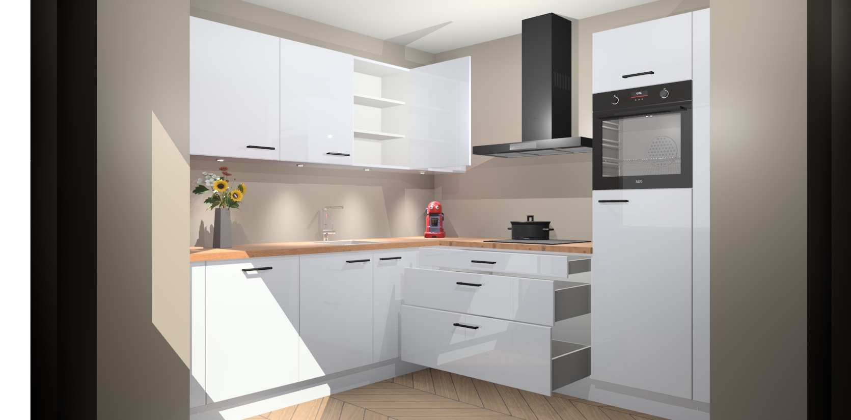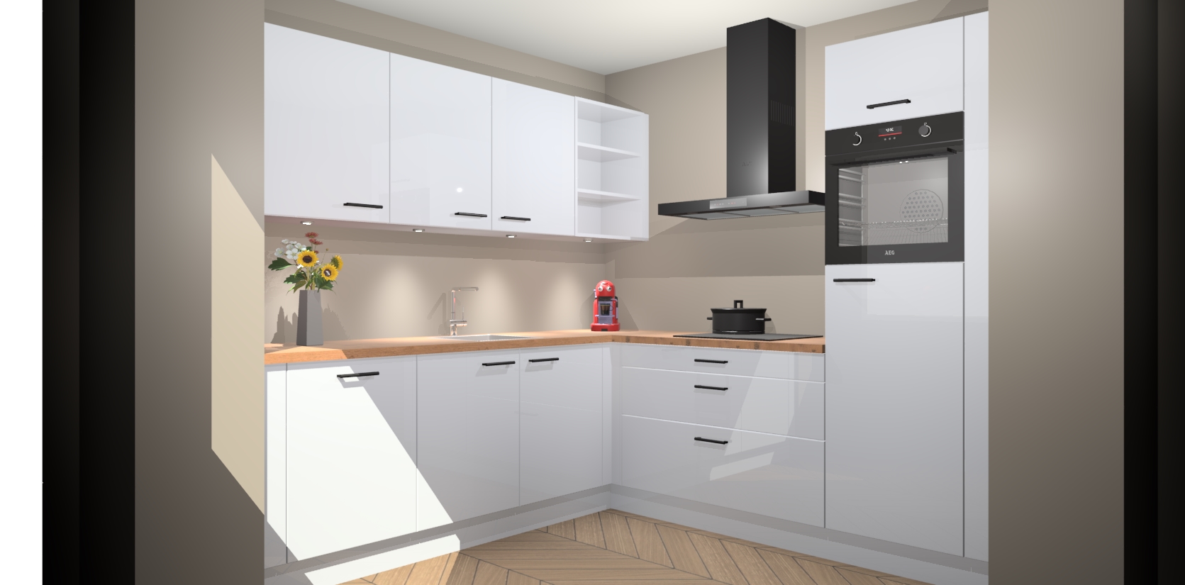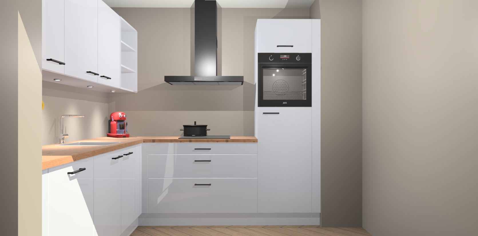 Met een modern, tijdloos design en ruime opslagruimte, zult u zich in no-time thuis voelen in uw nieuwe keuken. Uw leven wordt eenvoudiger met de soft-close deuren die voor het ultieme stille comfort zorgen - geen geluid dat u stoort terwijl u kookt. Ook is de keuken voorzien van 5 ingebouwde apparaten: een oven, inductie kookplaat, afzuigkap, vaatwasser en koelkast. Deze kunnen gemakkelijk na bestelling worden bijgewerkt naar AEG - waardoor uw luxe ervaring compleet is.