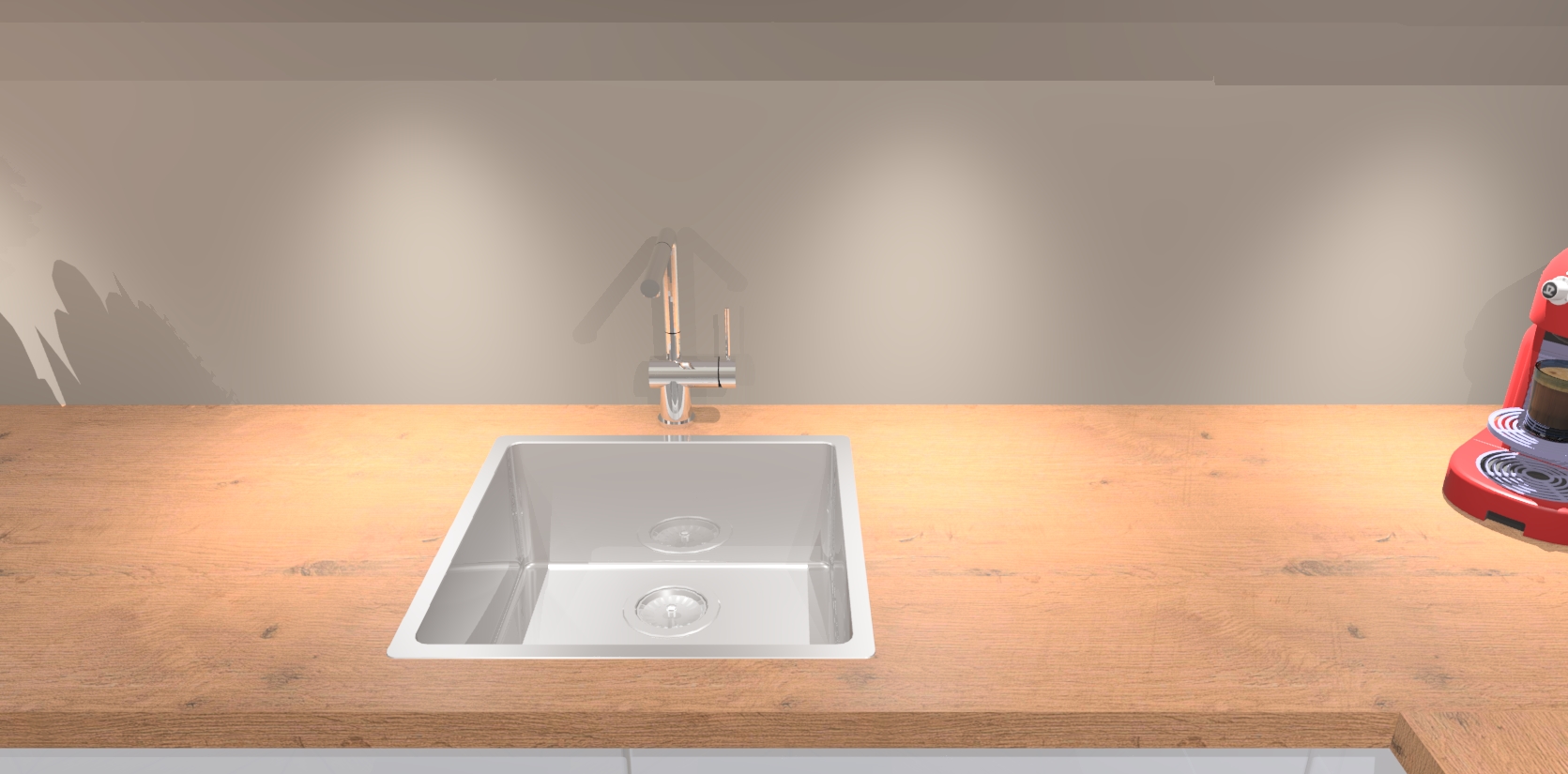 - De spoelbak is nog niet in gevreesd, dit dient tijdens het werk gedaan te worden
