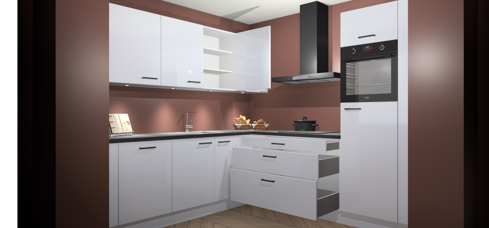 Met een modern, tijdloos design en ruime opslagruimte, zult u zich in no-time thuis voelen in uw nieuwe keuken. Uw leven wordt eenvoudiger met de soft-close deuren die voor het ultieme stille comfort zorgen - geen geluid dat u stoort terwijl u kookt. Ook is de keuken voorzien van 5 ingebouwde apparaten: een oven, inductie kookplaat, afzuigkap, vaatwasser en koelkast. Deze kunnen gemakkelijk na bestelling worden bijgewerkt naar AEG - waardoor uw luxe ervaring compleet is.