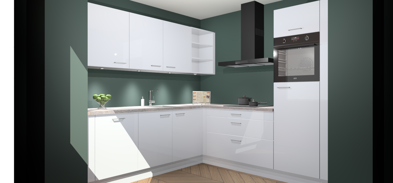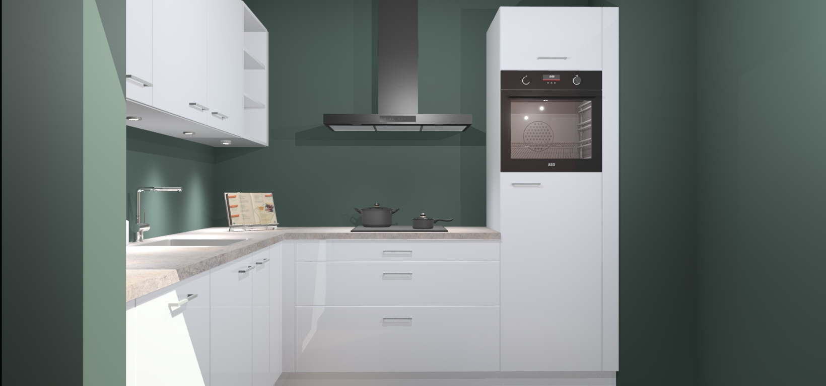 Met een modern, tijdloos design en ruime opslagruimte, zult u zich in no-time thuis voelen in uw nieuwe keuken. Uw leven wordt eenvoudiger met de soft-close deuren die voor het ultieme stille comfort zorgen - geen geluid dat u stoort terwijl u kookt. Ook is de keuken voorzien van 5 ingebouwde apparaten: een oven, inductie kookplaat, afzuigkap, vaatwasser en koelkast. Deze kunnen gemakkelijk na bestelling worden bijgewerkt naar AEG - waardoor uw luxe ervaring compleet is.