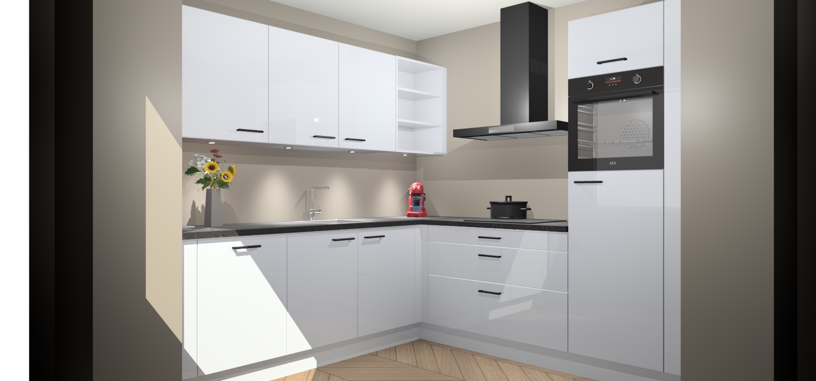 Met een modern, tijdloos design en ruime opslagruimte, zult u zich in no-time thuis voelen in uw nieuwe keuken. Uw leven wordt eenvoudiger met de soft-close deuren die voor het ultieme stille comfort zorgen - geen geluid dat u stoort terwijl u kookt. Ook is de keuken voorzien van 5 ingebouwde apparaten: een oven, inductie kookplaat, afzuigkap, vaatwasser en koelkast. Deze kunnen gemakkelijk na bestelling worden bijgewerkt naar AEG - waardoor uw luxe ervaring compleet is.