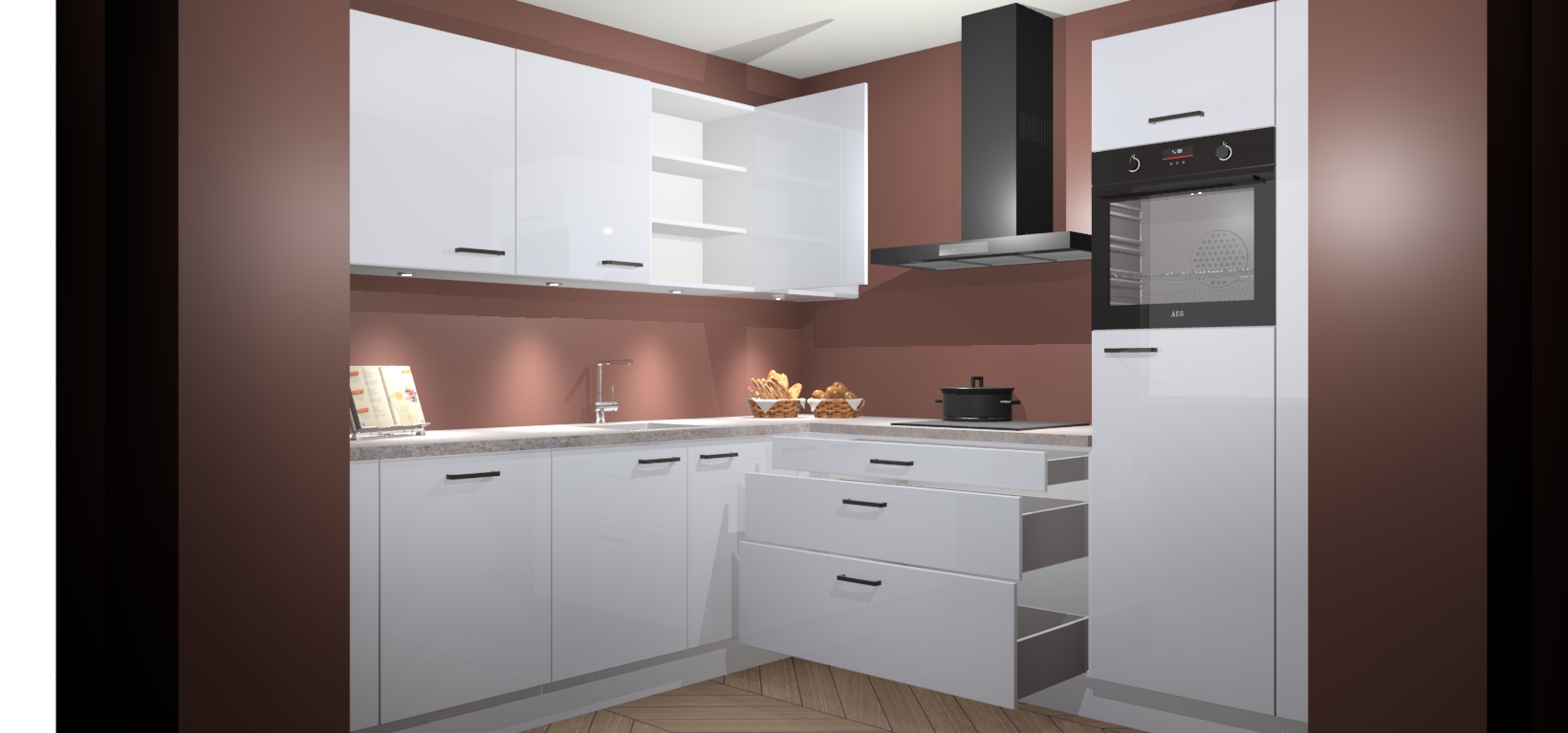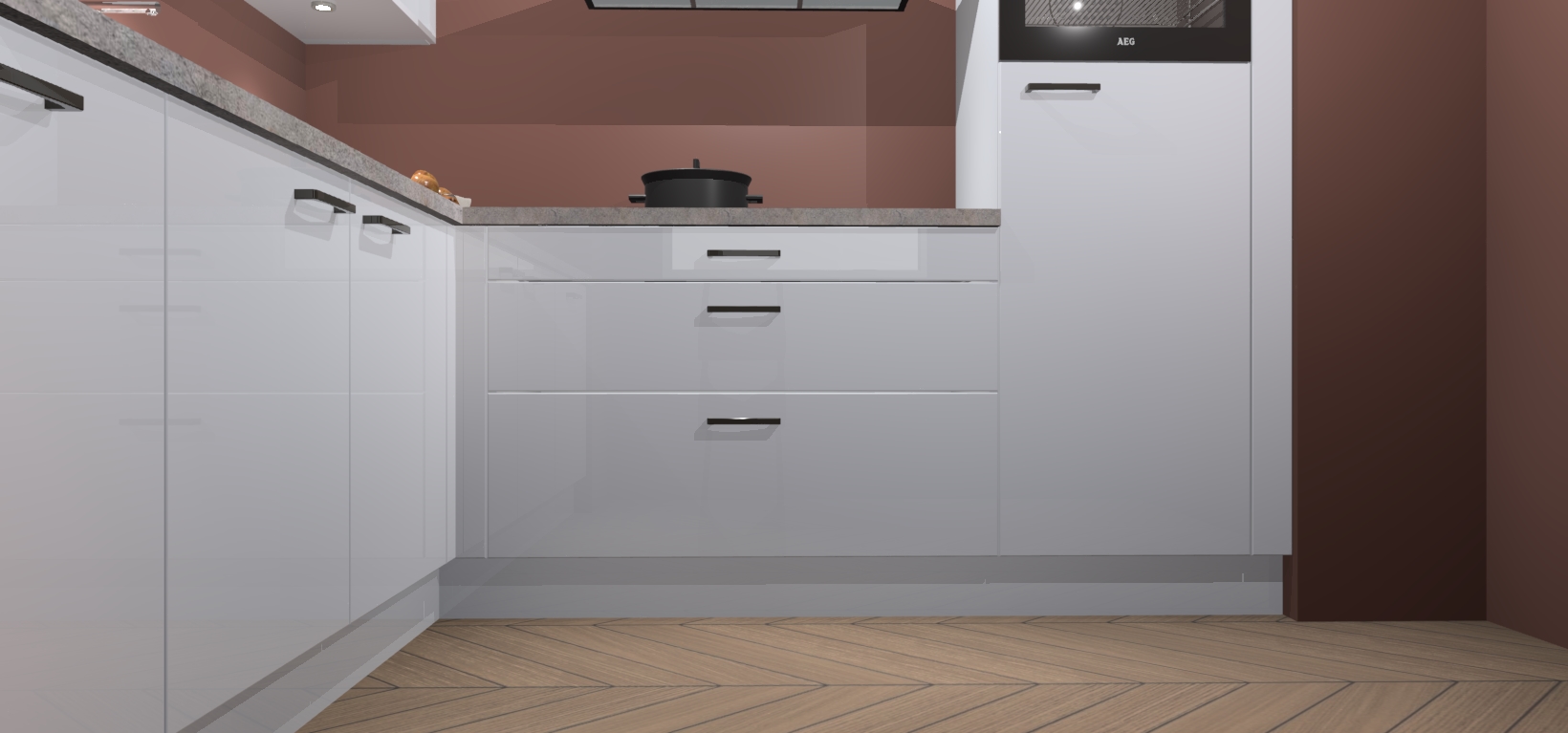 Met een modern, tijdloos design en ruime opslagruimte, zult u zich in no-time thuis voelen in uw nieuwe keuken. Uw leven wordt eenvoudiger met de soft-close deuren die voor het ultieme stille comfort zorgen - geen geluid dat u stoort terwijl u kookt. Ook is de keuken voorzien van 5 ingebouwde apparaten: een oven, inductie kookplaat, afzuigkap, vaatwasser en koelkast. Deze kunnen gemakkelijk na bestelling worden bijgewerkt naar AEG - waardoor uw luxe ervaring compleet is.