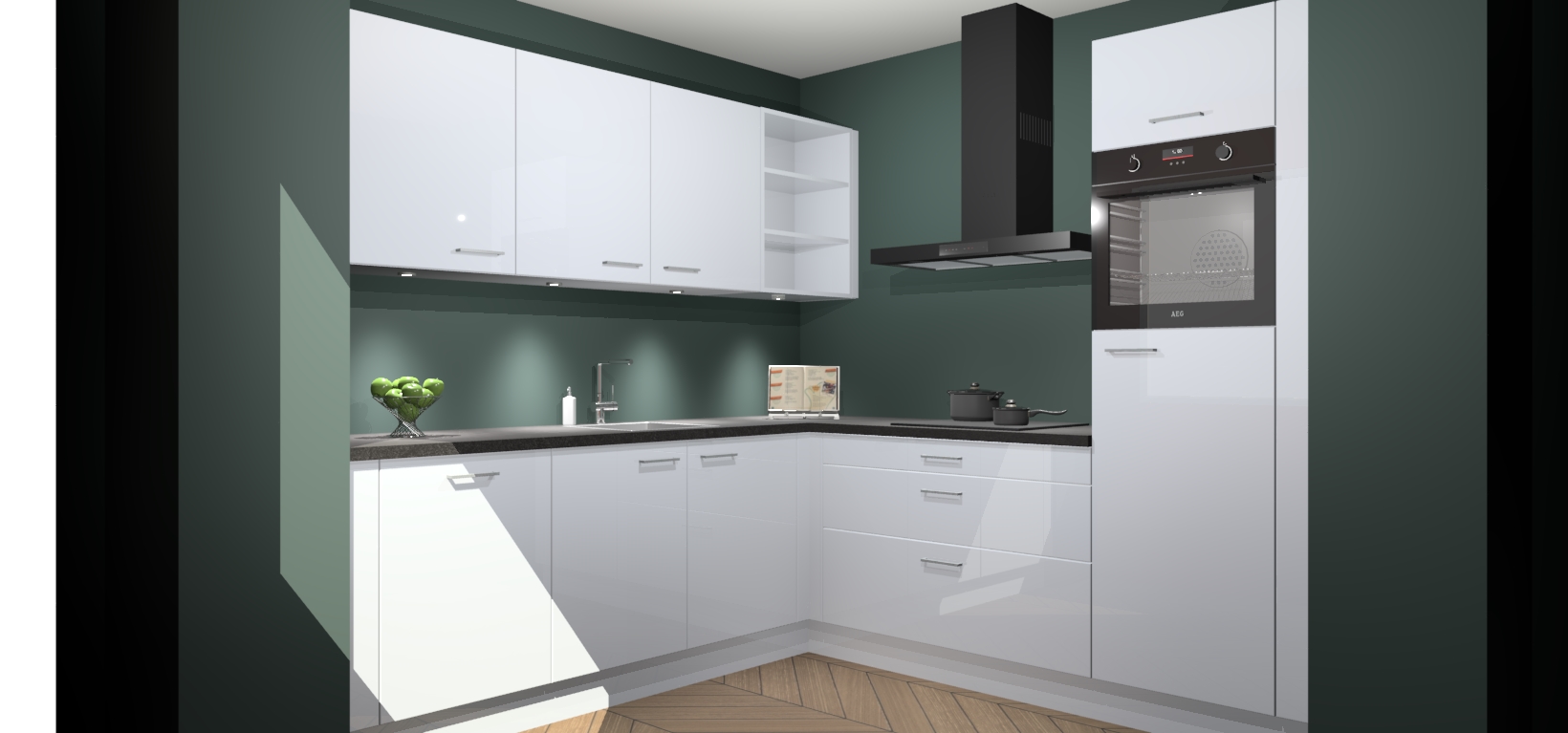 Met een modern, tijdloos design en ruime opslagruimte, zult u zich in no-time thuis voelen in uw nieuwe keuken. Uw leven wordt eenvoudiger met de soft-close deuren die voor het ultieme stille comfort zorgen - geen geluid dat u stoort terwijl u kookt. Ook is de keuken voorzien van 5 ingebouwde apparaten: een oven, inductie kookplaat, afzuigkap, vaatwasser en koelkast. Deze kunnen gemakkelijk na bestelling worden bijgewerkt naar AEG - waardoor uw luxe ervaring compleet is.