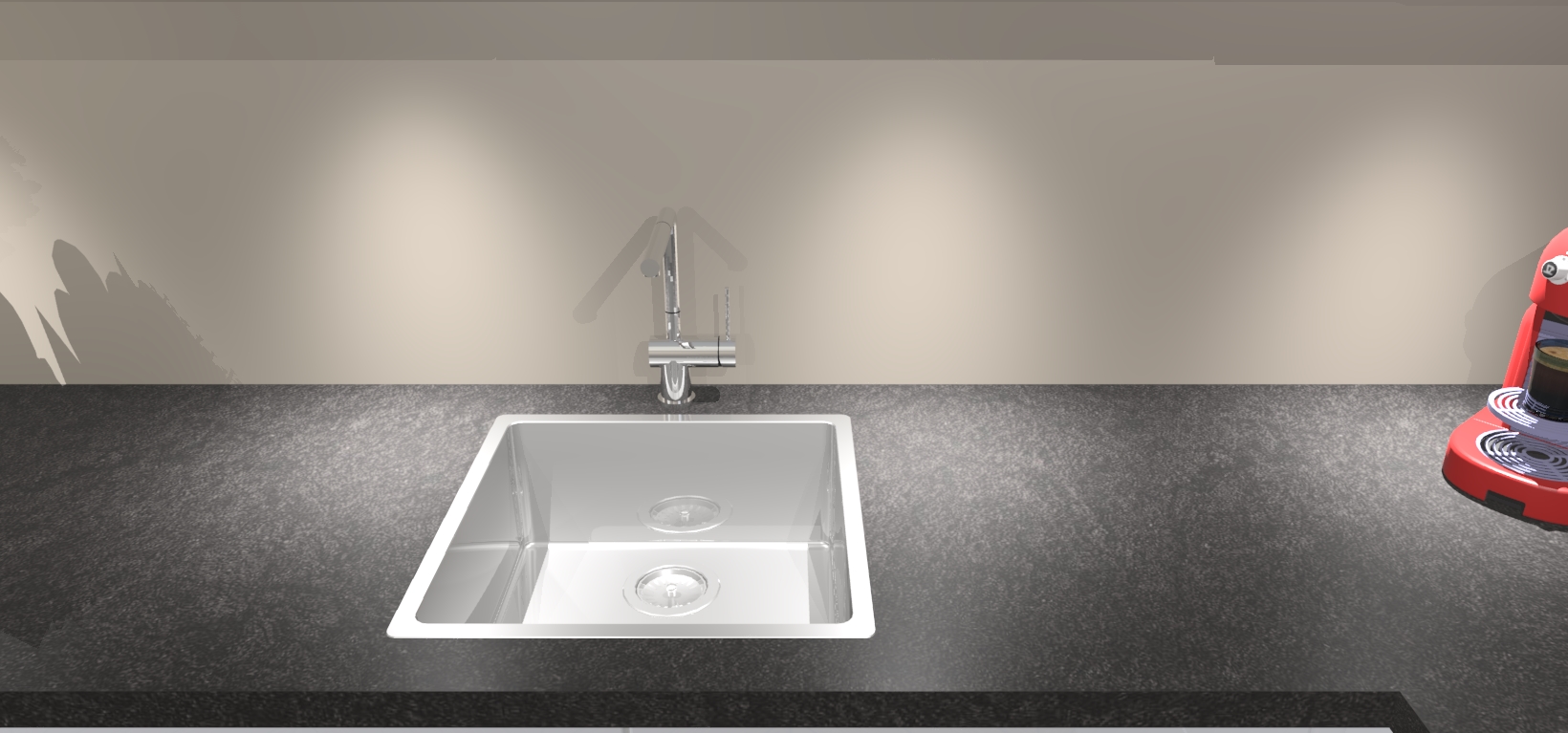 - De spoelbak is nog niet in gevreesd, dit dient tijdens het werk gedaan te worden