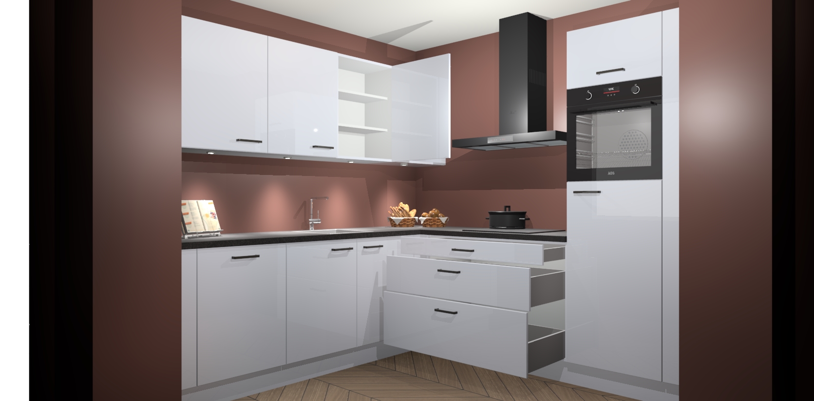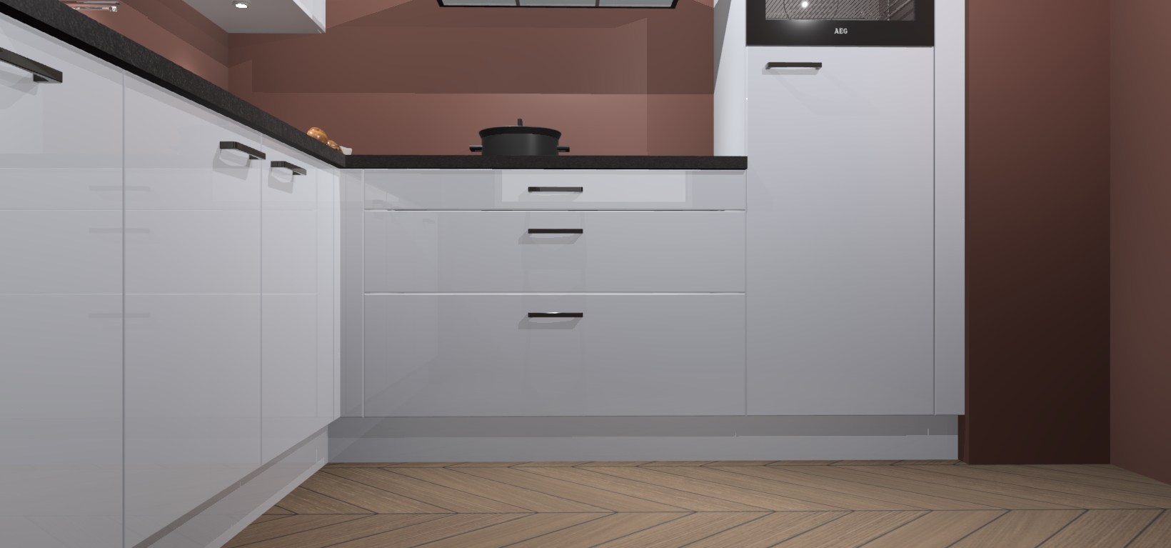 Met een modern, tijdloos design en ruime opslagruimte, zult u zich in no-time thuis voelen in uw nieuwe keuken. Uw leven wordt eenvoudiger met de soft-close deuren die voor het ultieme stille comfort zorgen - geen geluid dat u stoort terwijl u kookt. Ook is de keuken voorzien van 5 ingebouwde apparaten: een oven, inductie kookplaat, afzuigkap, vaatwasser en koelkast. Deze kunnen gemakkelijk na bestelling worden bijgewerkt naar AEG - waardoor uw luxe ervaring compleet is.