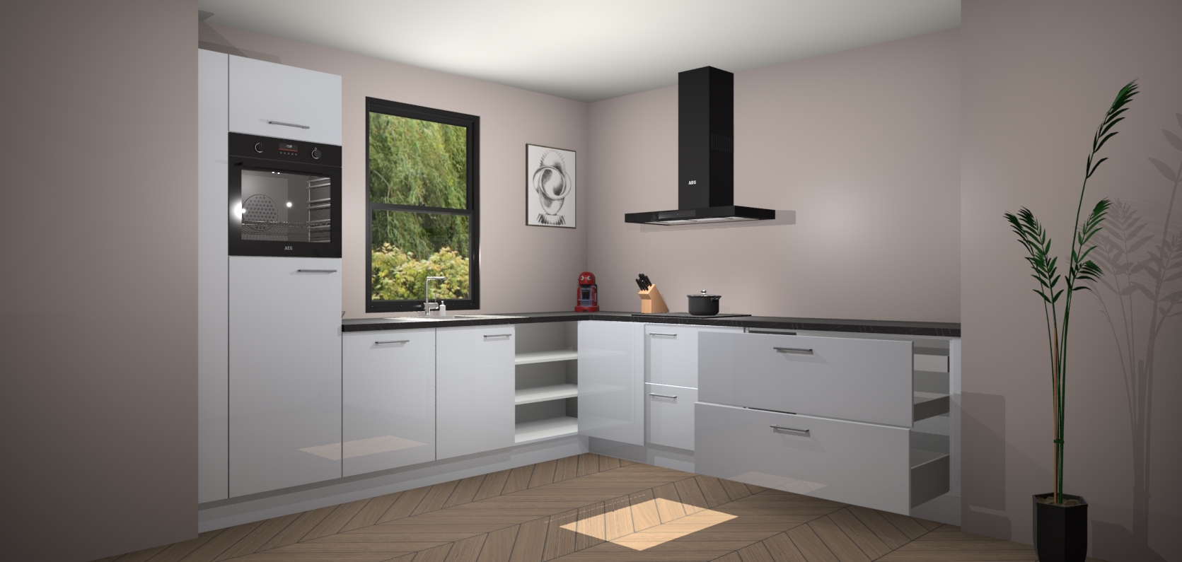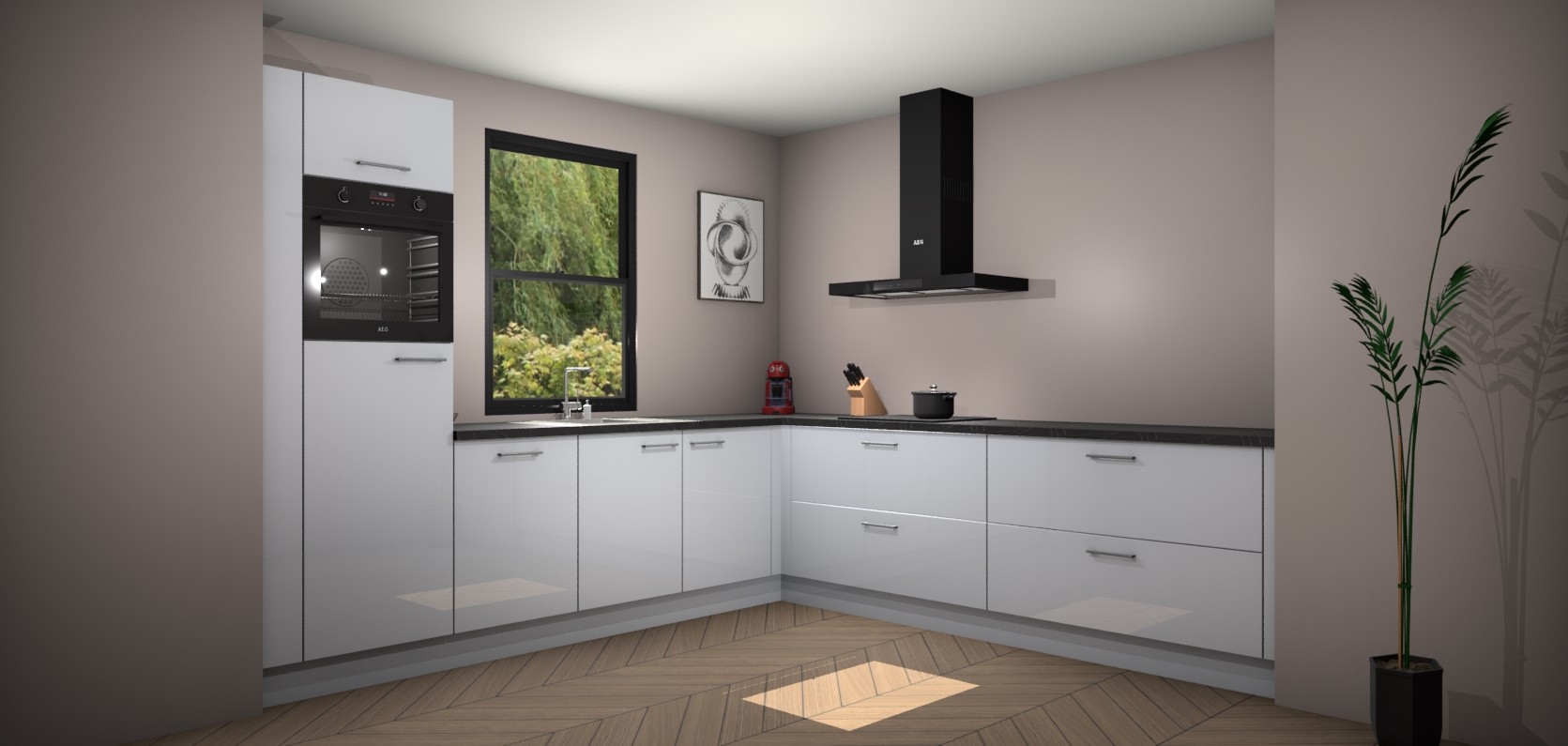 Welkom bij de sneeuwwitte hoogglans keuken Lublin. Deze prachtige keuken zal de komende jaren het middelpunt van de belangstelling in uw huis zijn. Uitgerust met vijf inbouwapparaten komt u nooit kookgereedschap tekort. Bovendien geeft de warme houtlook elke ruimte een uitnodigende en tijdloze uitstraling.