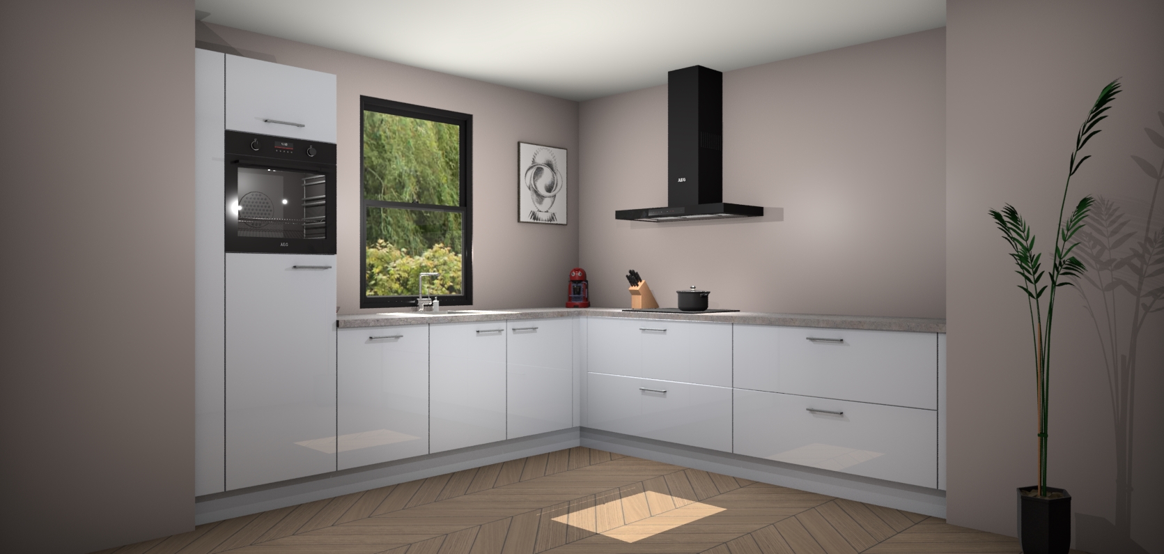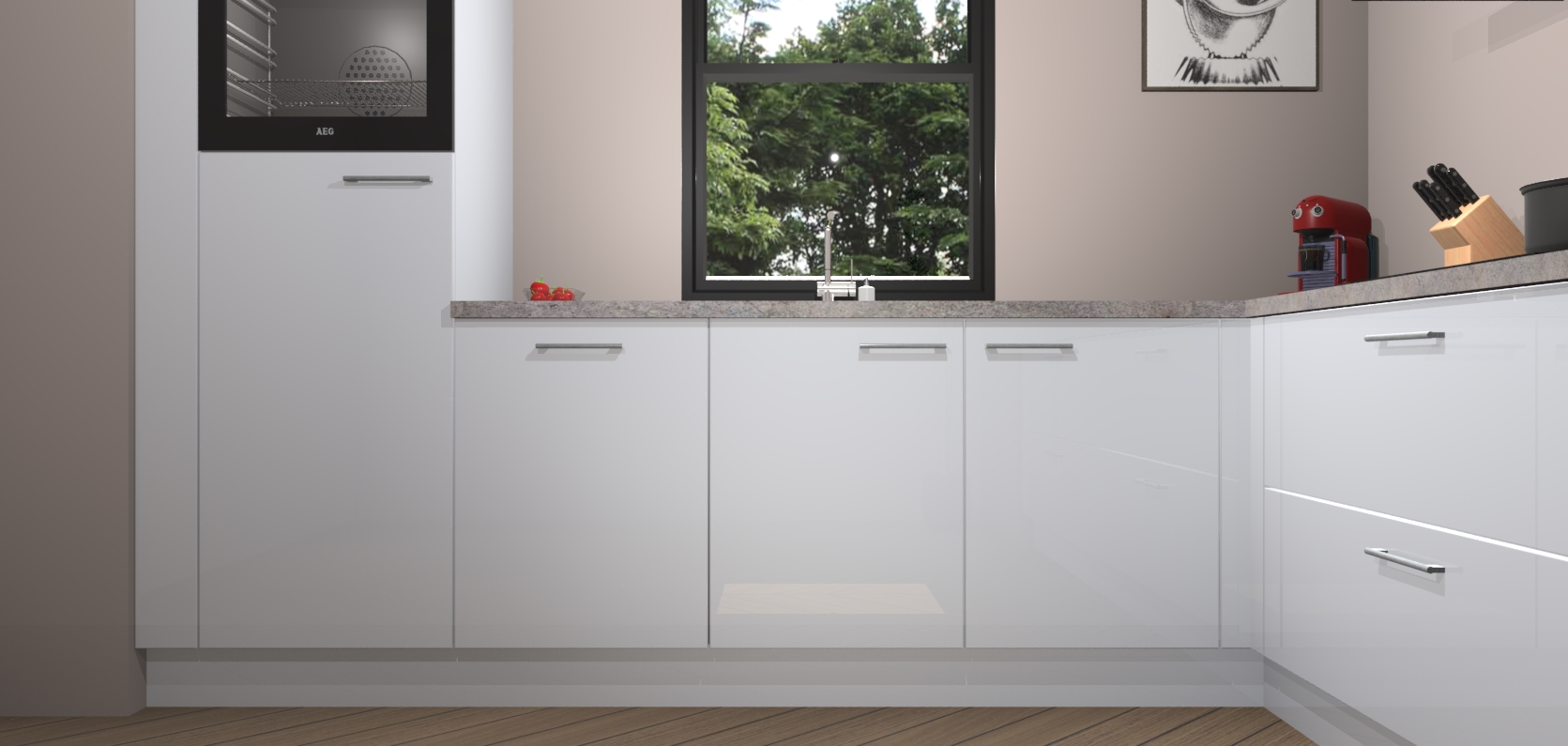 Welkom bij de sneeuwwitte hoogglans keuken Lublin. Deze prachtige keuken zal de komende jaren het middelpunt van de belangstelling in uw huis zijn. Uitgerust met vijf inbouwapparaten komt u nooit kookgereedschap tekort. Bovendien geeft de warme houtlook elke ruimte een uitnodigende en tijdloze uitstraling.