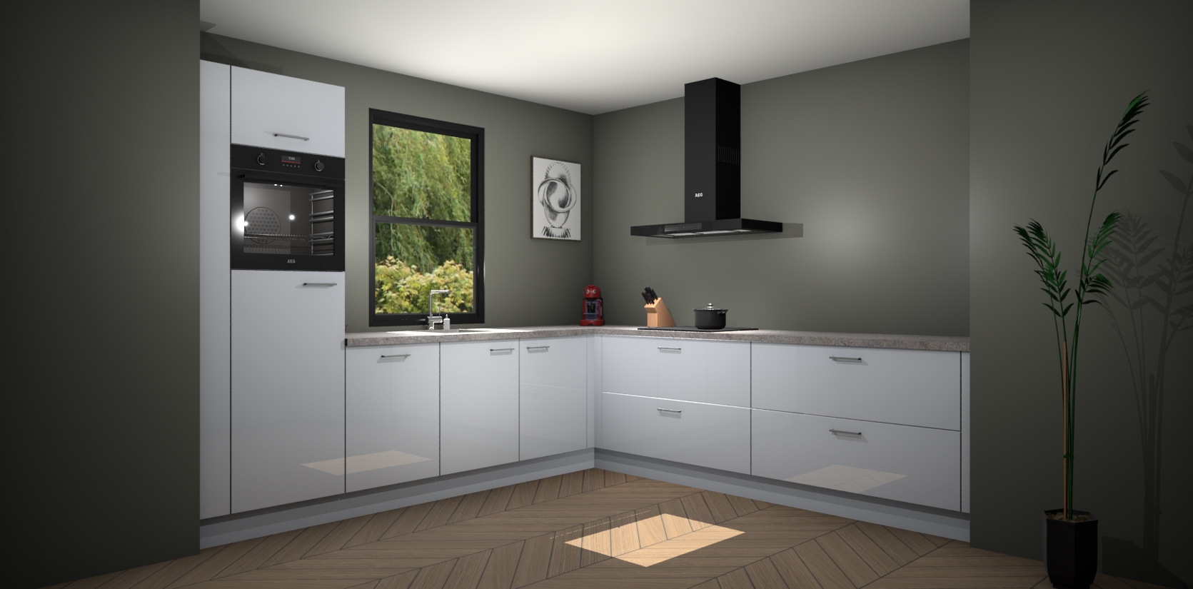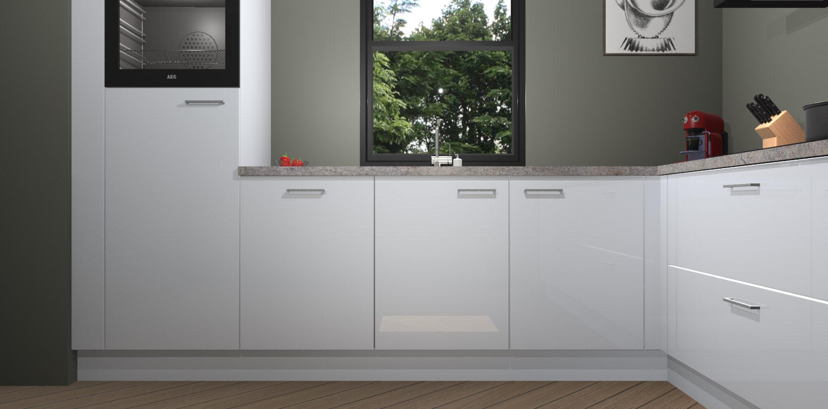 Welkom bij de sneeuwwitte hoogglans keuken Lublin. Deze prachtige keuken zal de komende jaren het middelpunt van de belangstelling in uw huis zijn. Uitgerust met vijf inbouwapparaten komt u nooit kookgereedschap tekort. Bovendien geeft de warme houtlook elke ruimte een uitnodigende en tijdloze uitstraling.