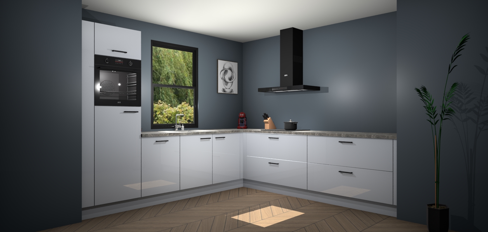 Welkom bij de sneeuwwitte hoogglans keuken Lublin. Deze prachtige keuken zal de komende jaren het middelpunt van de belangstelling in uw huis zijn. Uitgerust met vijf inbouwapparaten komt u nooit kookgereedschap tekort. Bovendien geeft de warme houtlook elke ruimte een uitnodigende en tijdloze uitstraling.