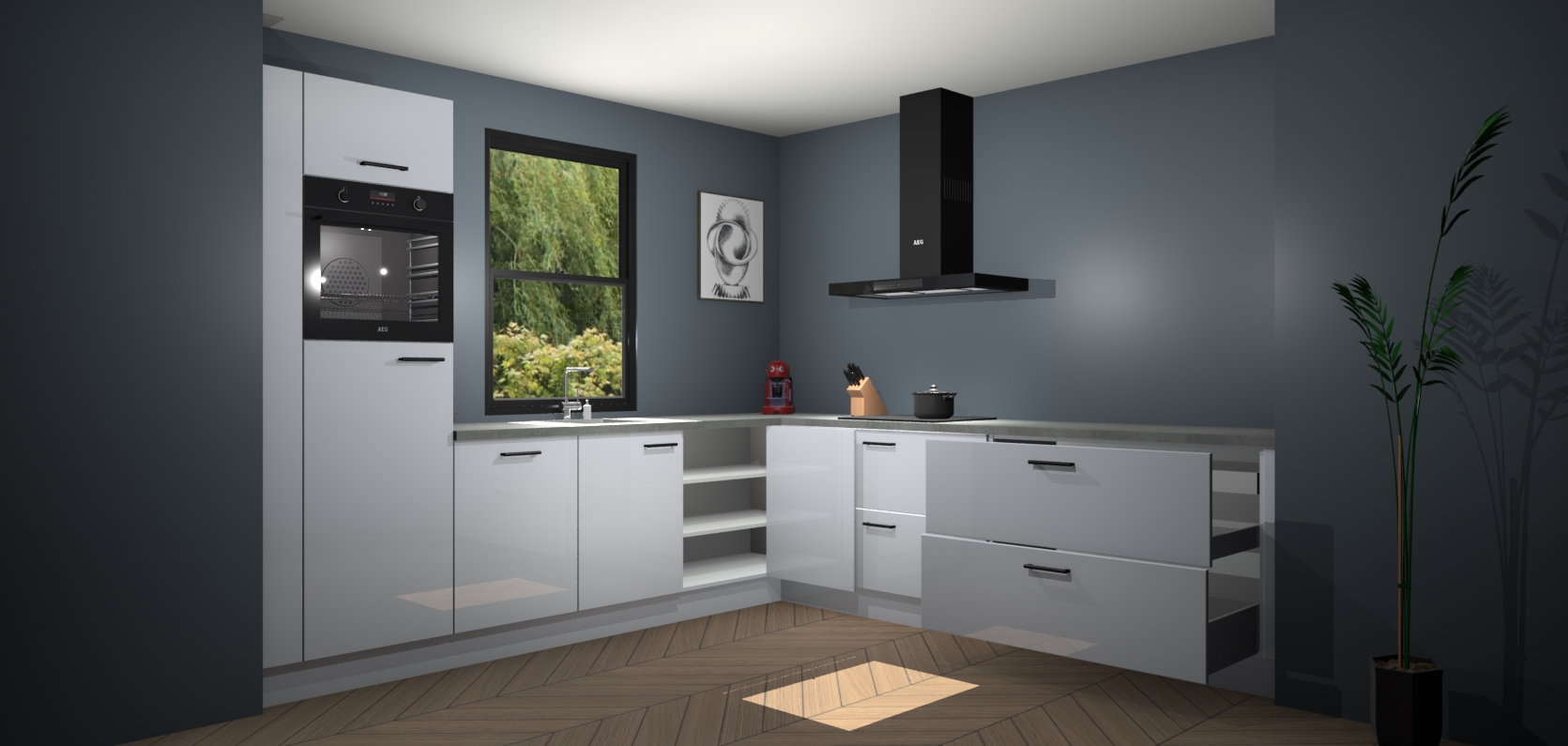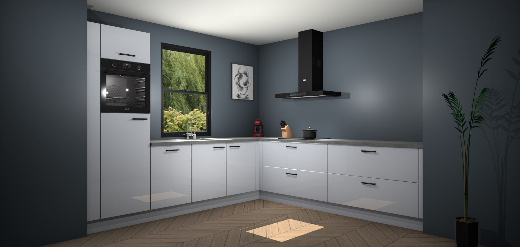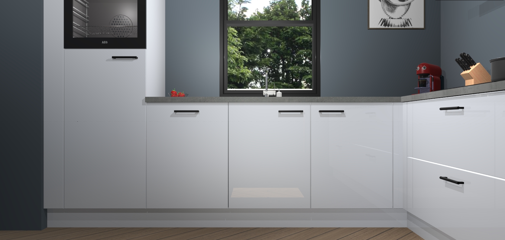 Welkom bij de sneeuwwitte hoogglans keuken Lublin. Deze prachtige keuken zal de komende jaren het middelpunt van de belangstelling in uw huis zijn. Uitgerust met vijf inbouwapparaten komt u nooit kookgereedschap tekort. Bovendien geeft de warme houtlook elke ruimte een uitnodigende en tijdloze uitstraling.