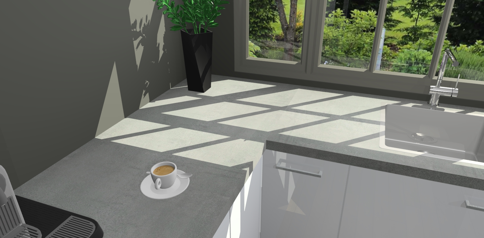 • Bij een hoekwerkblad zijn de hoeken in gevreesd en op maat gemaakt