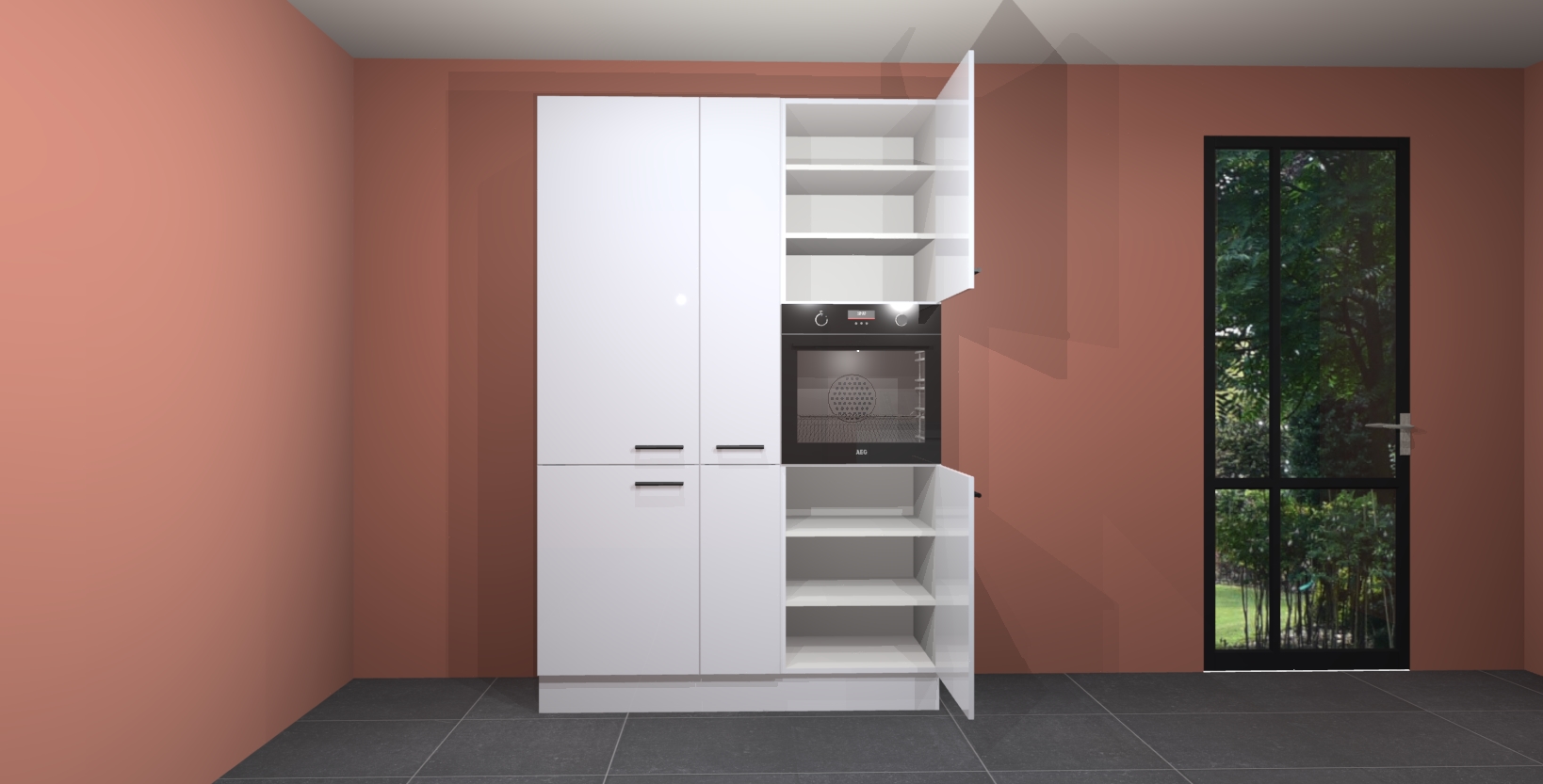 Met een modern, tijdloos design en ruime opslagruimte, zult u zich in no-time thuis voelen in uw nieuwe keuken. Uw leven wordt eenvoudiger met de soft-close deuren die voor het ultieme stille comfort zorgen - geen geluid dat u stoort terwijl u kookt. Ook is de keuken voorzien van 5 ingebouwde apparaten: een oven, inductie kookplaat, afzuigkap, vaatwasser en koelkast. Deze kunnen gemakkelijk na bestelling worden bijgewerkt naar AEG - waardoor uw luxe ervaring compleet is.