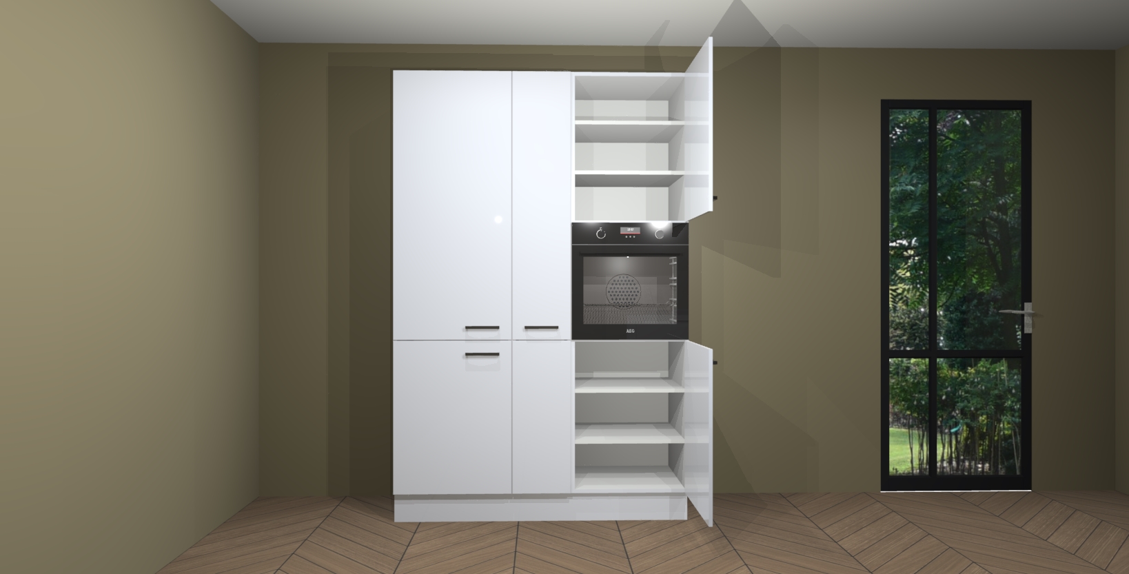 Met een modern, tijdloos design en ruime opslagruimte, zult u zich in no-time thuis voelen in uw nieuwe keuken. Uw leven wordt eenvoudiger met de soft-close deuren die voor het ultieme stille comfort zorgen - geen geluid dat u stoort terwijl u kookt. Ook is de keuken voorzien van 5 ingebouwde apparaten: een oven, inductie kookplaat, afzuigkap, vaatwasser en koelkast. Deze kunnen gemakkelijk na bestelling worden bijgewerkt naar AEG - waardoor uw luxe ervaring compleet is.