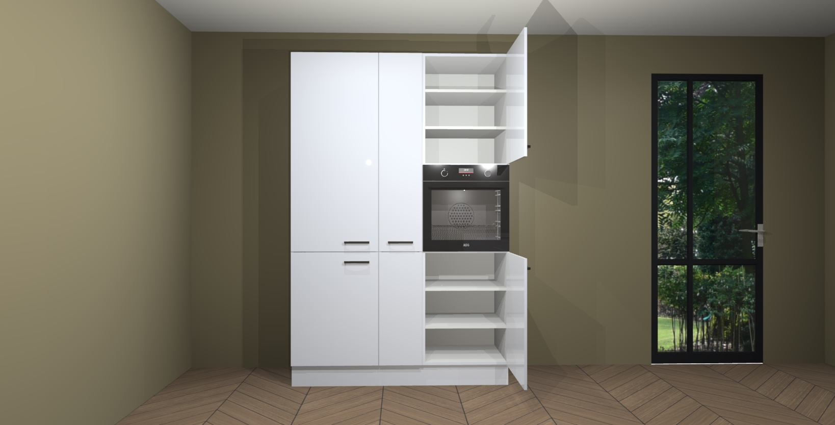 Met een modern, tijdloos design en ruime opslagruimte, zult u zich in no-time thuis voelen in uw nieuwe keuken. Uw leven wordt eenvoudiger met de soft-close deuren die voor het ultieme stille comfort zorgen - geen geluid dat u stoort terwijl u kookt. Ook is de keuken voorzien van 5 ingebouwde apparaten: een oven, inductie kookplaat, afzuigkap, vaatwasser en koelkast. Deze kunnen gemakkelijk na bestelling worden bijgewerkt naar AEG - waardoor uw luxe ervaring compleet is.