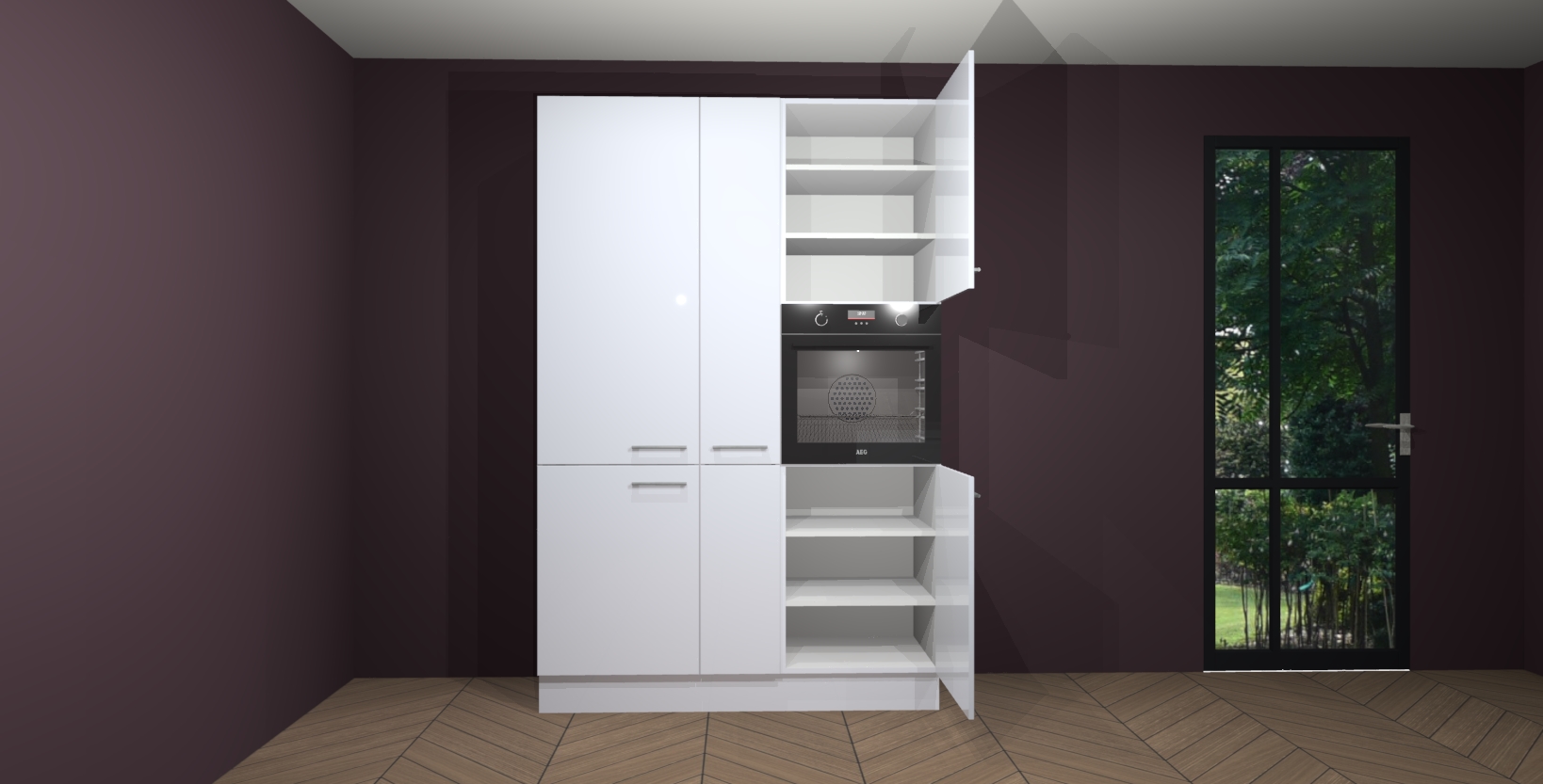 Met een modern, tijdloos design en ruime opslagruimte, zult u zich in no-time thuis voelen in uw nieuwe keuken. Uw leven wordt eenvoudiger met de soft-close deuren die voor het ultieme stille comfort zorgen - geen geluid dat u stoort terwijl u kookt. Ook is de keuken voorzien van 5 ingebouwde apparaten: een oven, inductie kookplaat, afzuigkap, vaatwasser en koelkast. Deze kunnen gemakkelijk na bestelling worden bijgewerkt naar AEG - waardoor uw luxe ervaring compleet is.